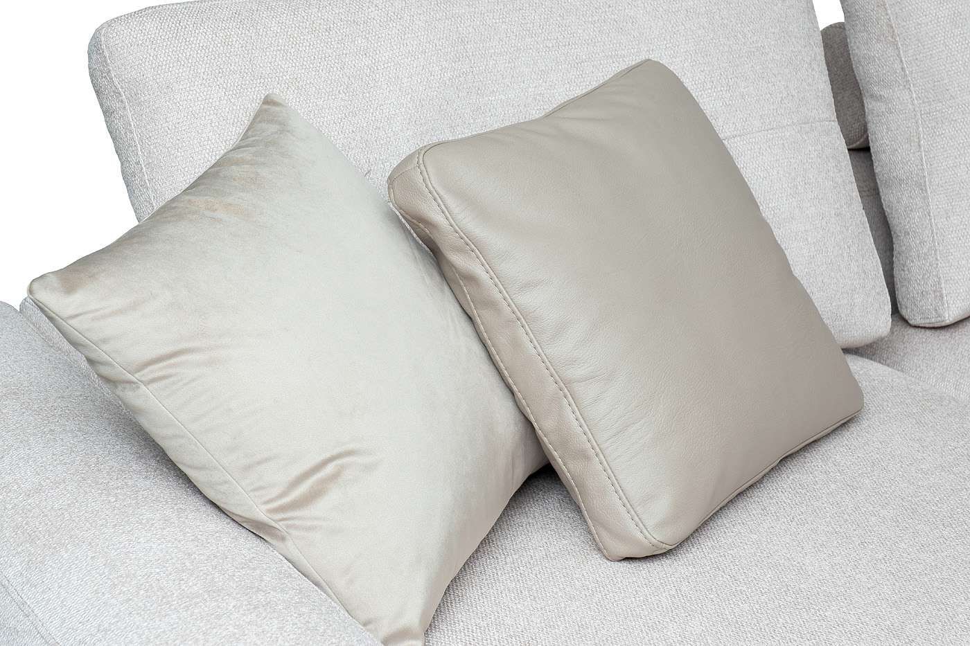 Комплект мебели Порто(Porto) №4. В состав комплекта входит: модуль основание трехместное- 1шт; модуль подлокотник низкий -2шт; модуль сиденье с низкой спинкой- 3шт. Основная ткань комплекта- рогожка из коллекции Garda Decor- Натур-Беж(Natur-Beg); основание выполнено в иск.коже- Энзо(Enzo)260. В состав комплекта входят декоративные подушки: декоративная подушка 45*45см- 2штв ткани велюр Колтон(Colton)021, декоративная подушка с бурлетом 40*40см-2шт в иск.коже Энзо(Enzo)260. Габариты комплекта: ширина- 294см, глубина- 107см, высота спинки от пола-560мм, высота подушки спинки от пола-880мм . Глубина сиденья- 82см, высота посадочного места- 45см