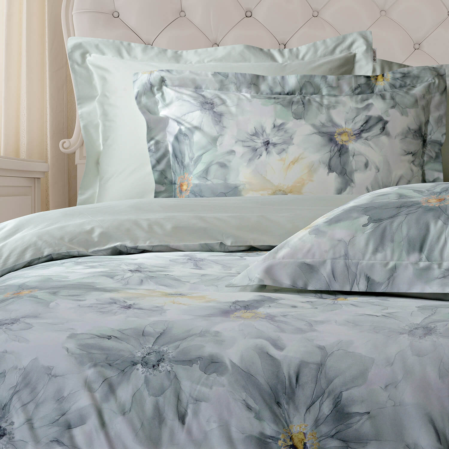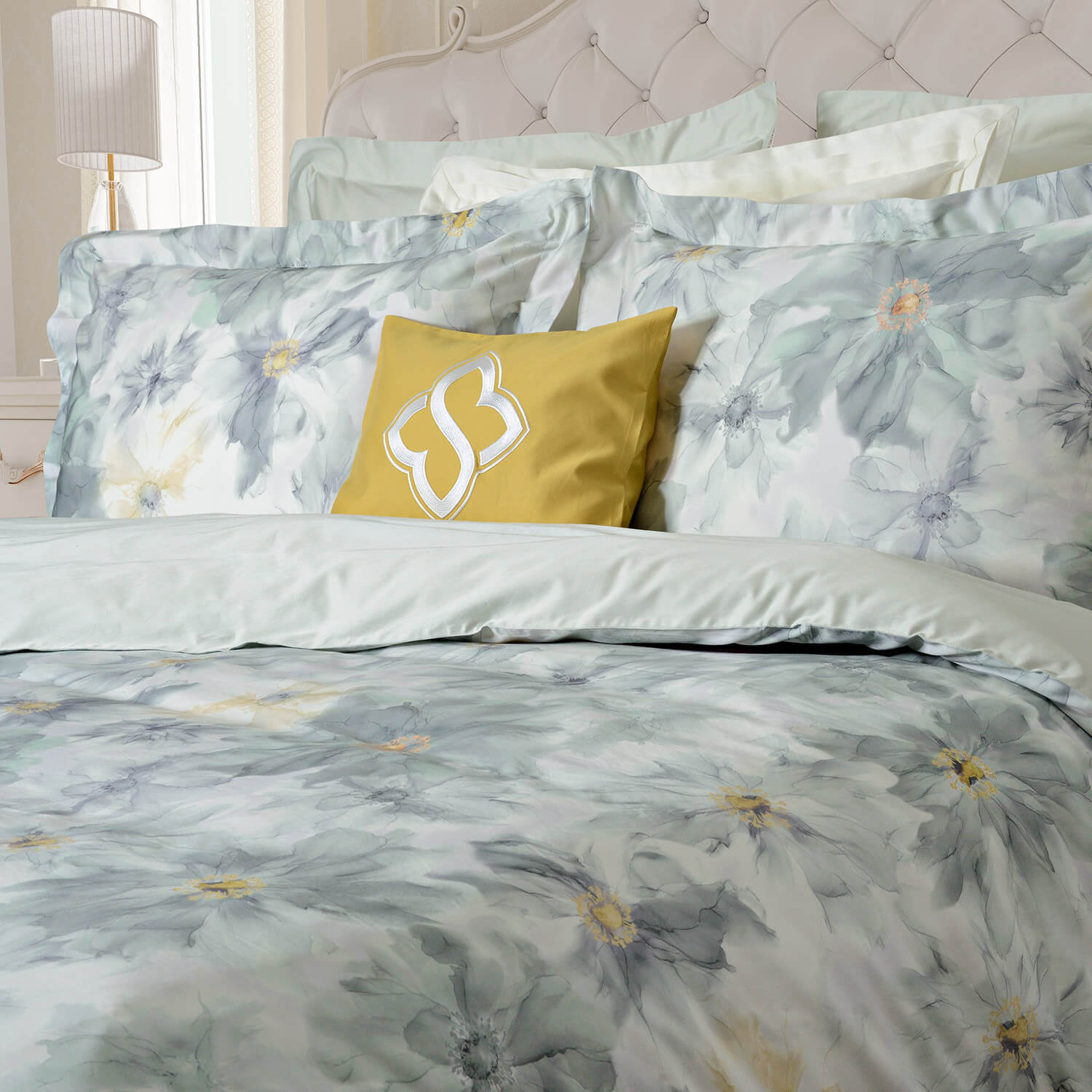 Наволочки к постельному белью Sharmes Zefir изготовлены из смесовой ткани, на 61% состоящей из тенсела и на 39% — из хлопка. Лицевая сторона изготовлена из принтованной ткани. Обратная сторона изготовлена из ткани компаньона мятного цвета. Наволочка имеет боковой клапан, что позволяет пользоваться наволочкой с обеих сторон.