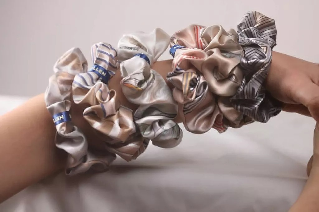 Комплект резинок для волос из натурального 100% шёлка. Резинки в комплекте обладают уникальным принтом, а также выглядят особенно эффектно за счет блестящего плотного материала. Эстетика и забота о ваших волосах. Шелк предупреждает появление секущихся кончиков и не ломает волосы внутри хвоста, усиливает блеск и гладкость волос.