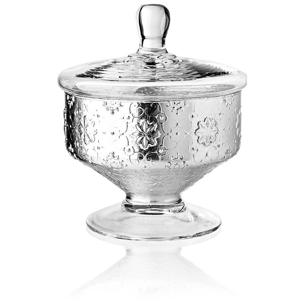 Конфетница с крышкой IVV Арабески 23см серебристый узор