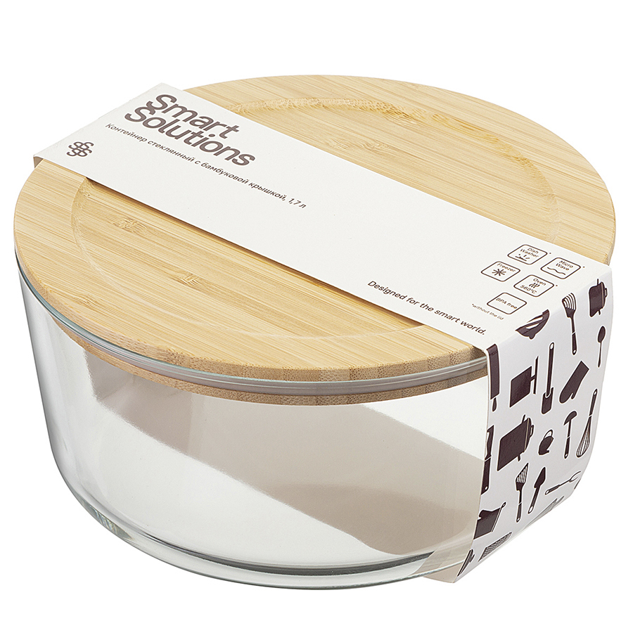 Контейнер 1.7л Smart Solutions стеклянный с бамбуковой крышкой