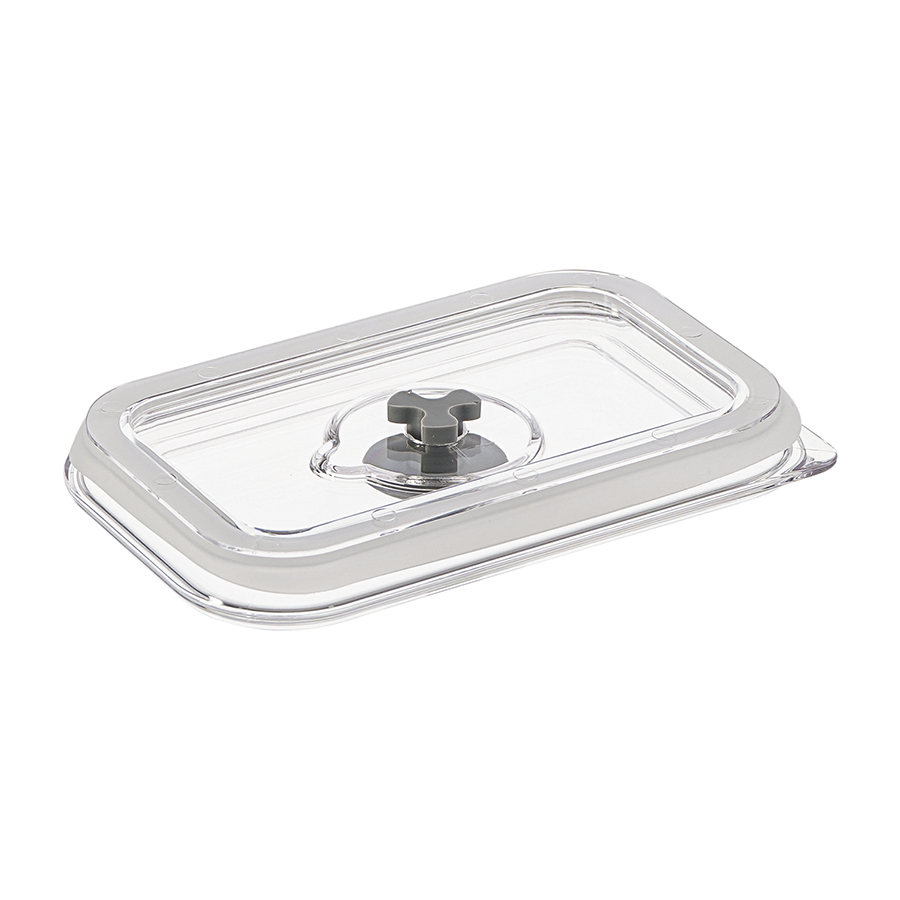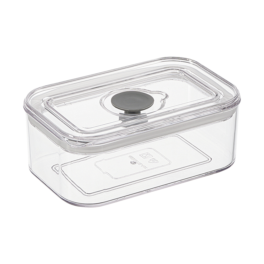 - Контейнер выполнен из SAN-пластика, который обладает высокой прочностью, не впитывает запахи и не вступает в химическую реакцию с продуктами.