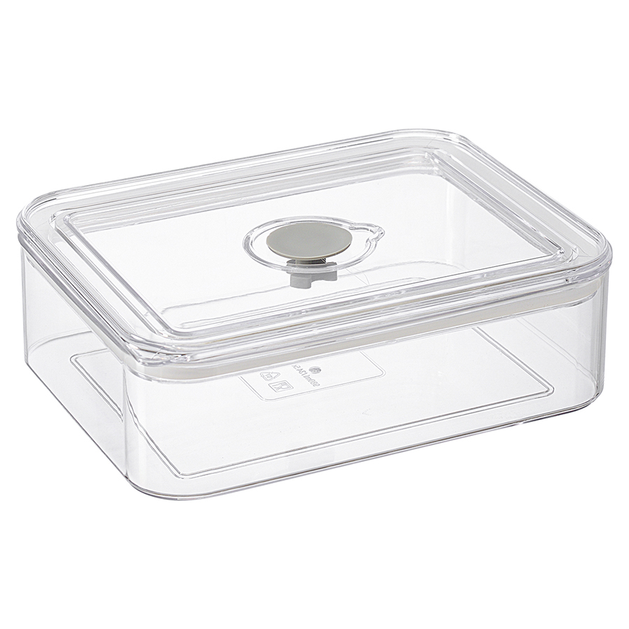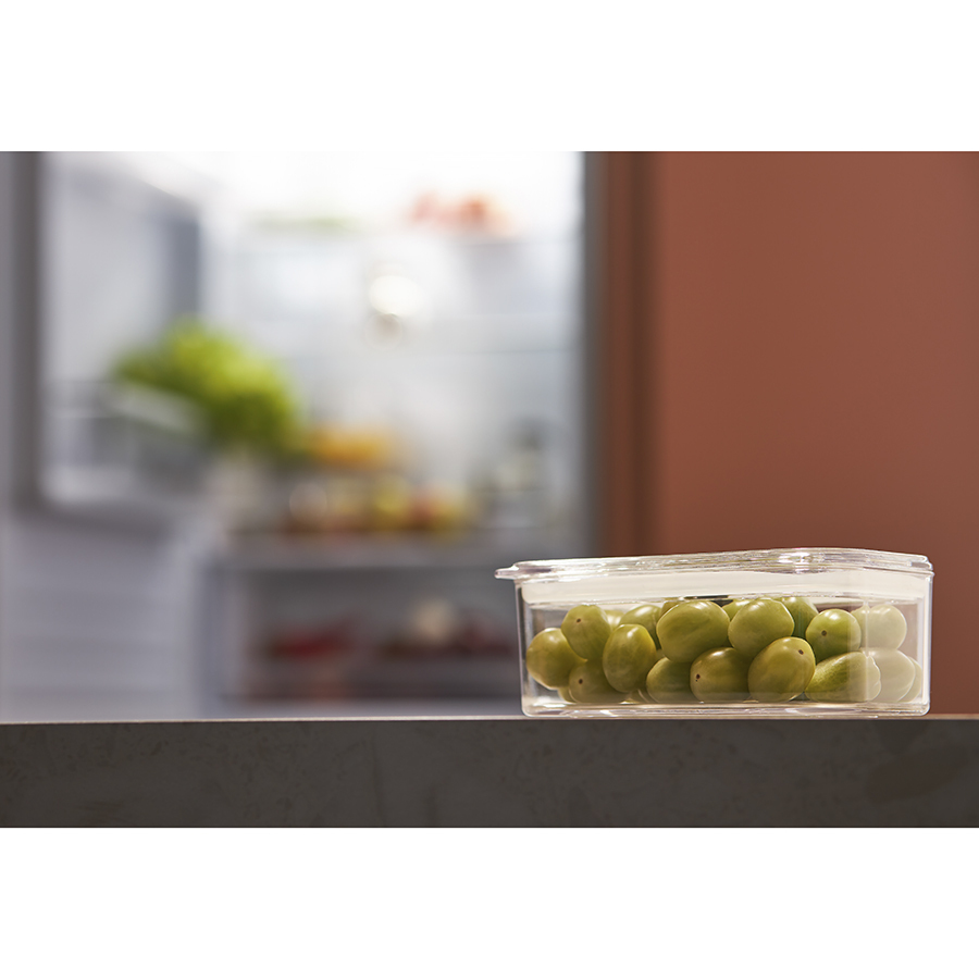 - Контейнер выполнен из SAN-пластика, который обладает высокой прочностью, не впитывает запахи и не вступает в химическую реакцию с продуктами.