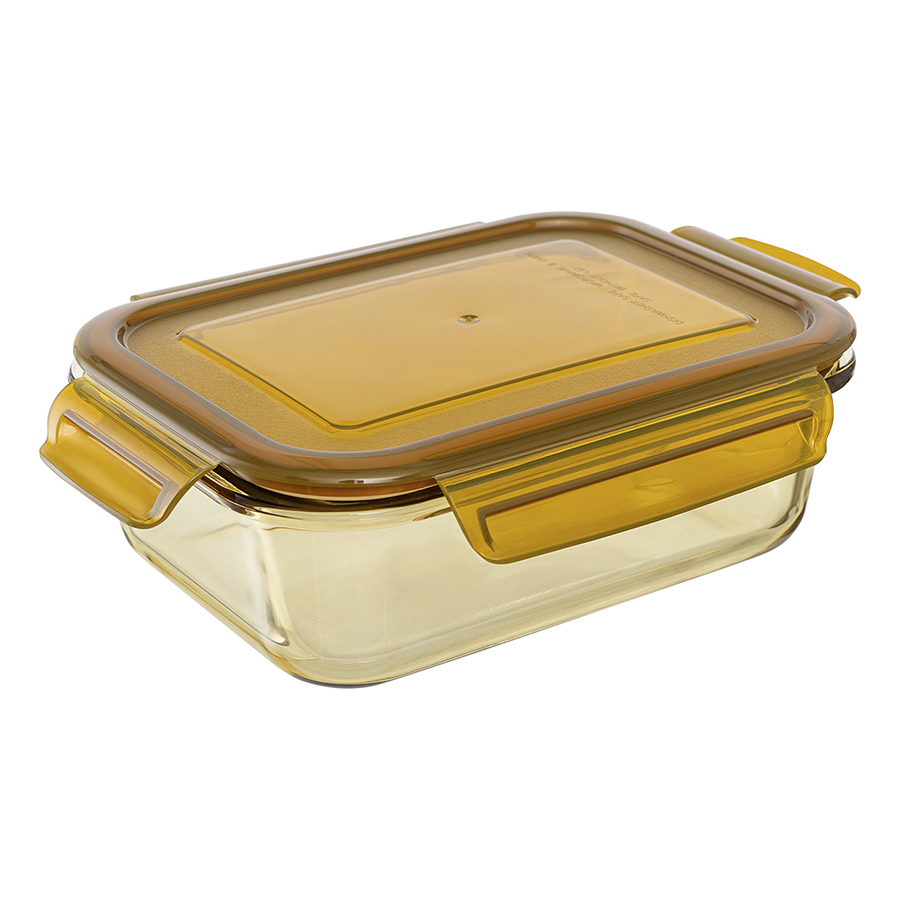 Емкость выполнена из боросиликатного стекла. Материал обладает повышенной стойкостью к механическим повреждениям, температурным перепадам, безвреден для здоровья и окружающей среды, за счет чего идеально подходит для контакта с пищей. Пластиковая крышка плотно прилегает благодаря специальным защелкам, расположенным с четырех сторон.