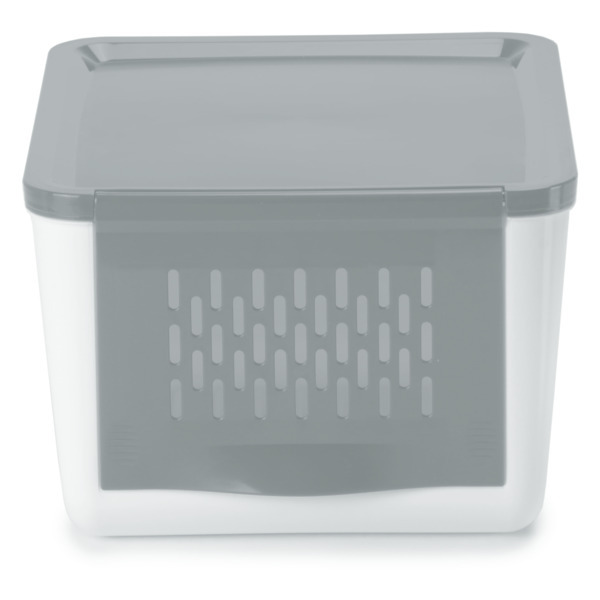 Контейнер итальянской марки SNIPS изготовлен из качественного пластика светлых оттенков. В составе материала нет бисфенола А, поэтому он безопасен. Контейнер предназначен для хранения лука, картофеля и других овощей. Сетчатая дверца обеспечивает вентилируемую среду, поэтому продукты долгое время сохраняют свежесть. Легко разбирается и его легко можно помыть вручную или в посудомоечной машине до 45 °С. Конструкция разработана таким образом, что емкости можно ставить друг на друга. Кухонное приспособление рассчитано на длительный срок службы.