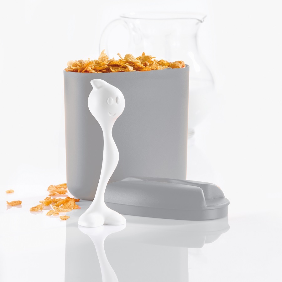 Крышка защищает продукты от попадания воздуха, света и влаги. Также на нее крепится удобная порционная ложка. Материал не содержит бисфенола-А и меламина. Объем: 1,5 л.