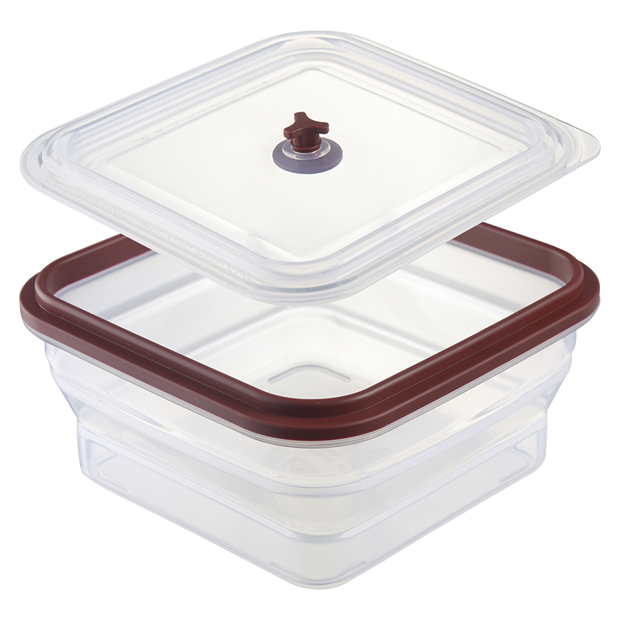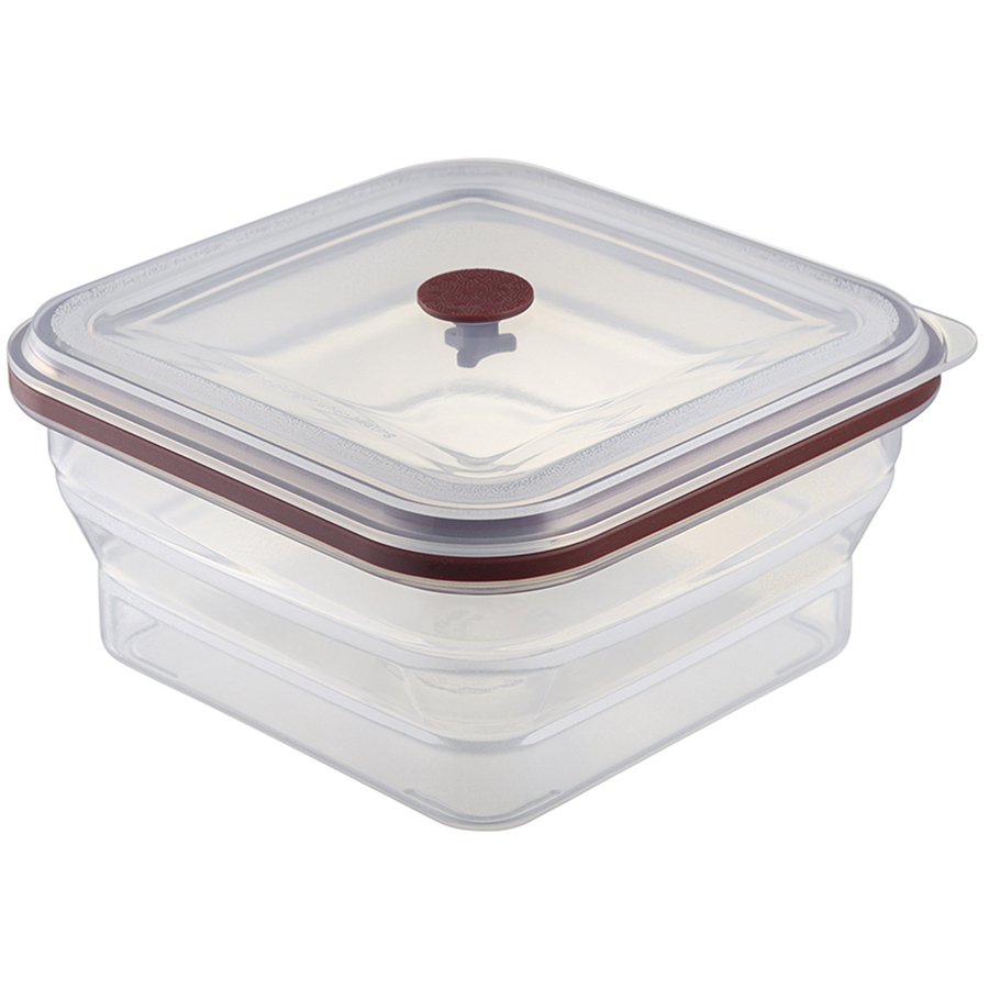 Материал: пищевой силикон. Размеры: 17х17х8,2 см. Размеры в сложенном виде: 17х17х3,7 см. Объем: 1,2 л. Цвет: темно-сливовый.