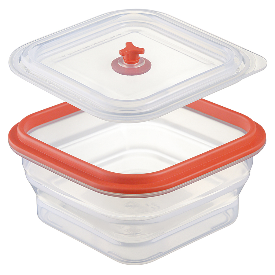 Материал: пищевой силикон. Размеры: 13,5х13,5х7 см. Размеры в сложенном виде: 13.5х13,5х3,2 см. Объем: 600 мл. Цвет: красный.