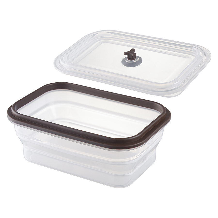 Материал: пищевой силикон. Размеры: 19х13х7,7 см. Размеры в сложенном виде: 19х13х3,4 см. Объем: 900 мл. Цвет: темно-сливовый.