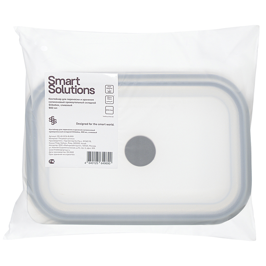 Контейнер Silikobox от бренда Smart Solutions – удобное и практичное решение для хранения, переноски продуктов и готовой еды. В отличие от недорогих аналогов, вся емкость и крышка выполнены из 100% пищевого силикона Pure Silicon. Материал используется для производства детских бутылочек и изделий, рассчитанных на контакт с пищей, так как является абсолютно безопасным, не имеет запаха, не меняет вкус продуктов и не выделяет вредных веществ во время нагревания. Силиконовый контейнер также обладает высокой прочностью и эластичностью, поэтому не деформируется под воздействием высоких и низких температур. Плотное прилегание крышки гарантирует герметичность, исключает проливание. Складная конструкция обеспечивает компактное хранение и транспортировку.