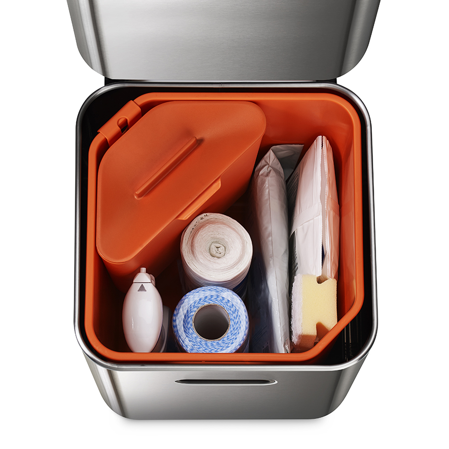 Отделения представляют собой вместительные контейнеры из нержавеющей стали, для которых можно использовать как стандартные, так и специально разработанные пакеты. Конструкция позволяет надежно закреплять внутри мусорные пакеты, а вентилируемые отверстия помогают быстро извлекать их по мере наполнения.