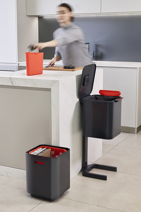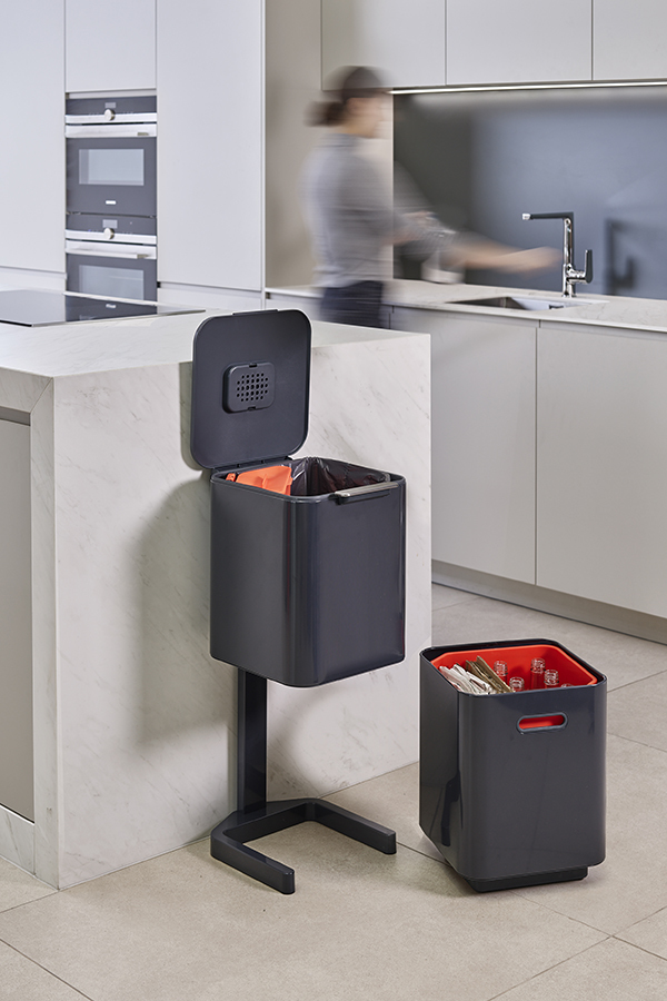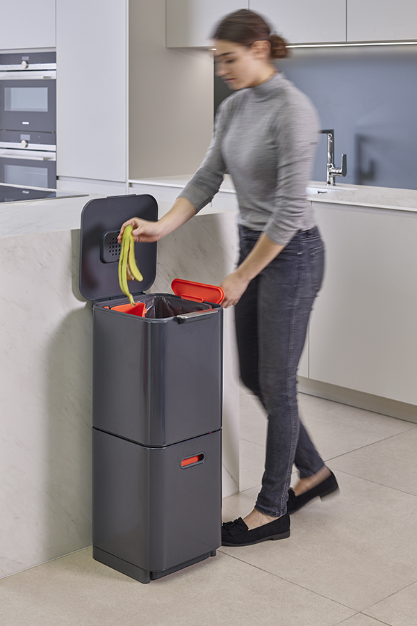 Totem Compact – абсолютно новый контейнер для мусора с двумя баками. Он специально разработан для облегчения задачи сортировки и утилизации самых разных типов мусора: пластика, стекла, пищевых отходов. Вертикальное расположение баков позволит максимально сэкономить пространство на кухне.