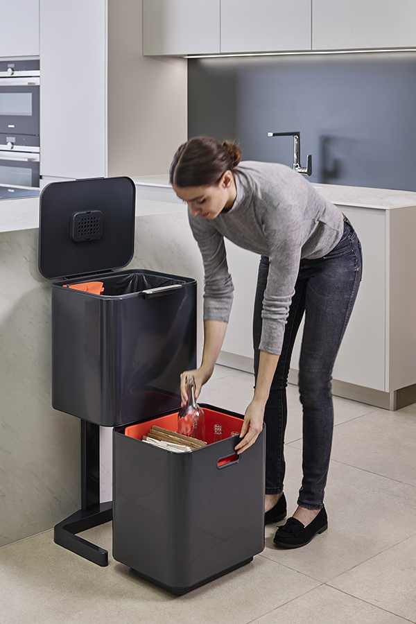 Totem Max – абсолютно новый контейнер для мусора с двумя баками. Он специально разработан для облегчения задачи сортировки и утилизации самых разных типов мусора: пластика, стекла, пищевых отходов. Вертикальное расположение баков позволит максимально сэкономить пространство на кухне.