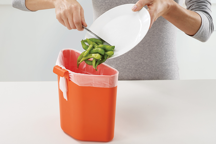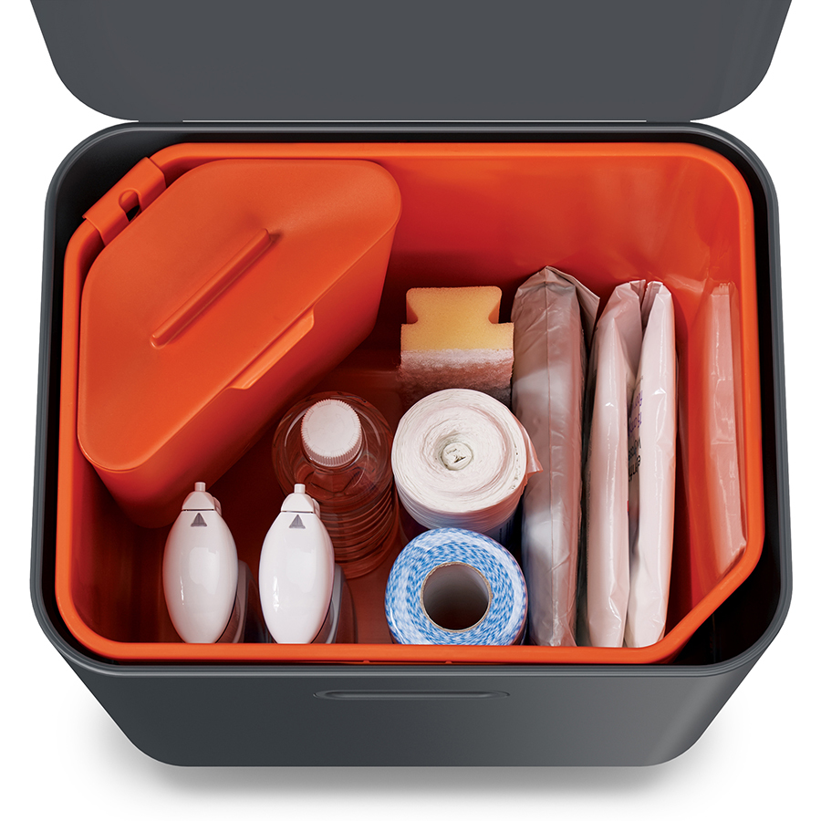 Верхний бак дополнен съемным контейнером для пищевых отходов, который плотно закрывается крышкой. Хранить его можно как внутри отсека, так и на рабочей поверхности. Нижний бак может использоваться не только для накопления мусора, но и хранения пакетов и хозяйственных принадлежностей.