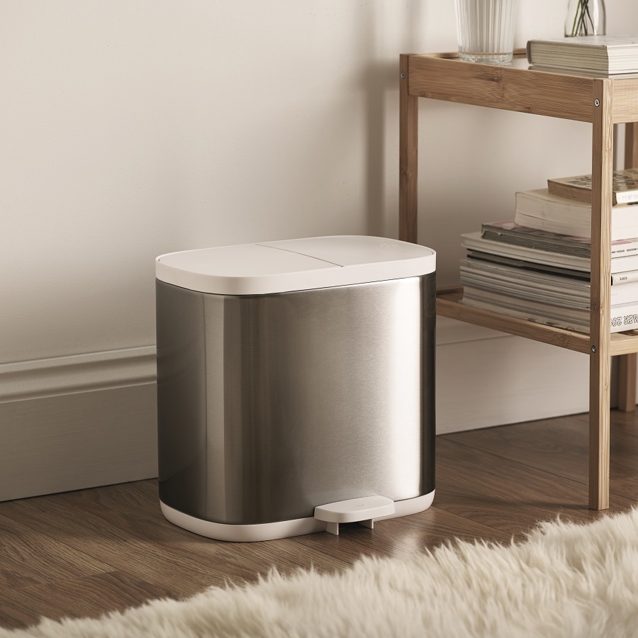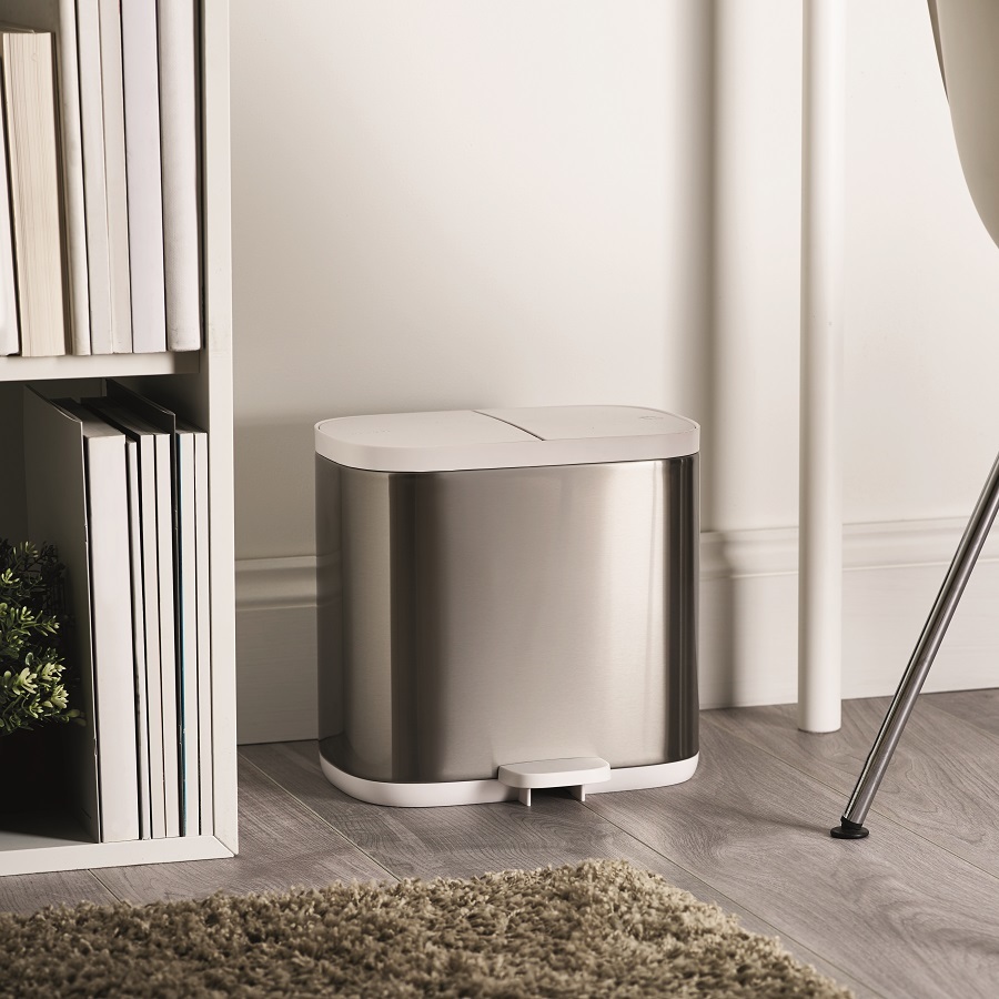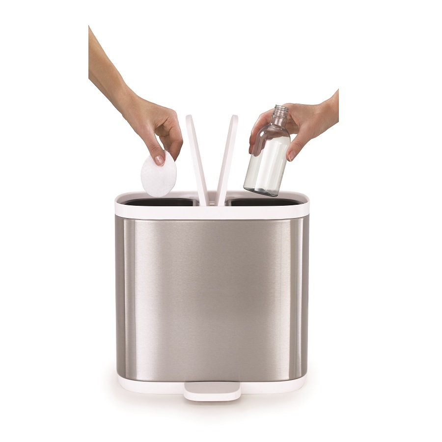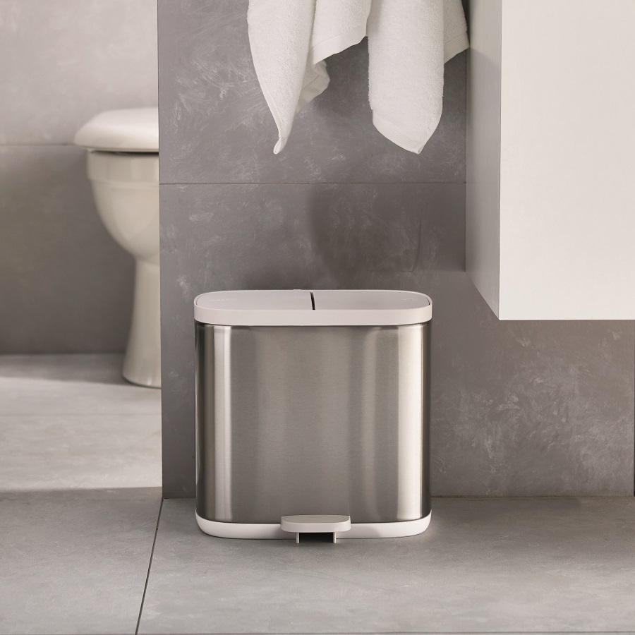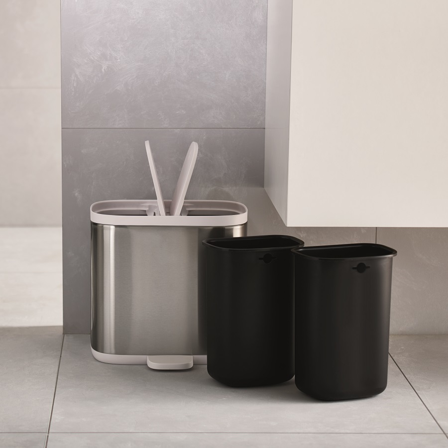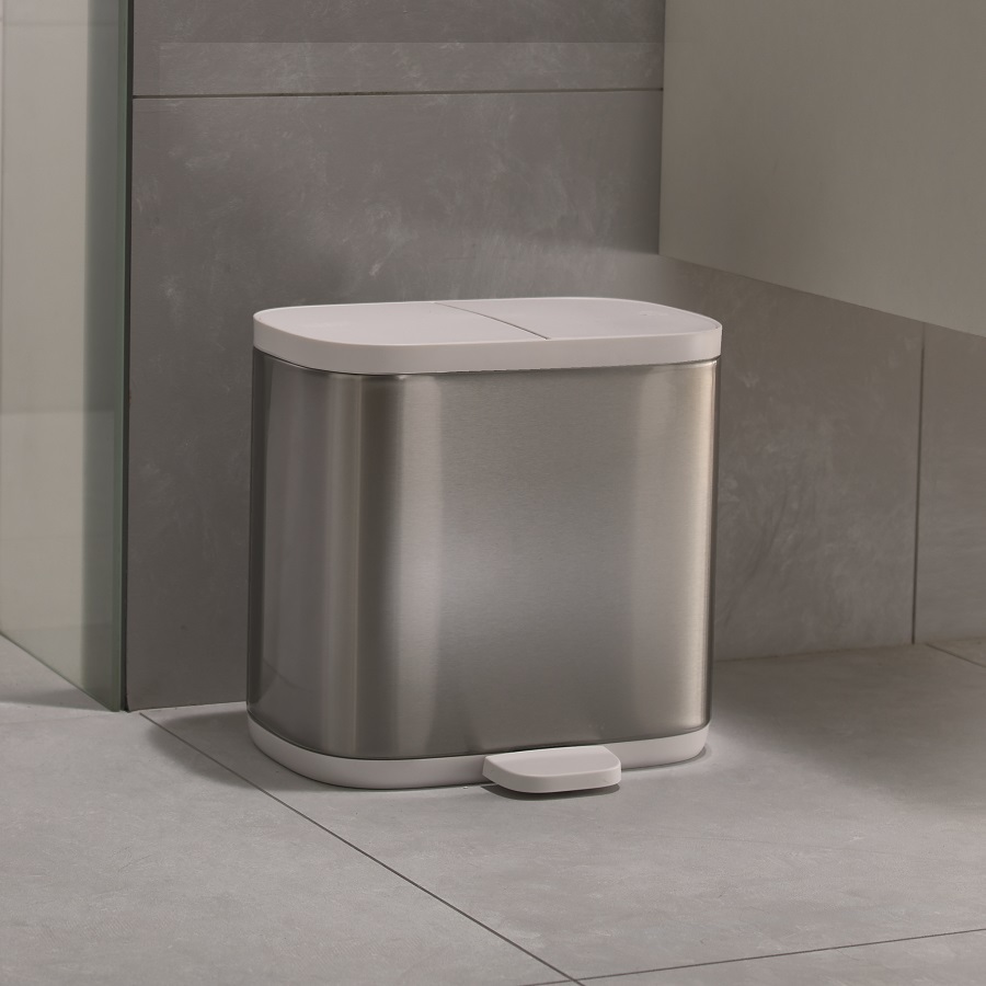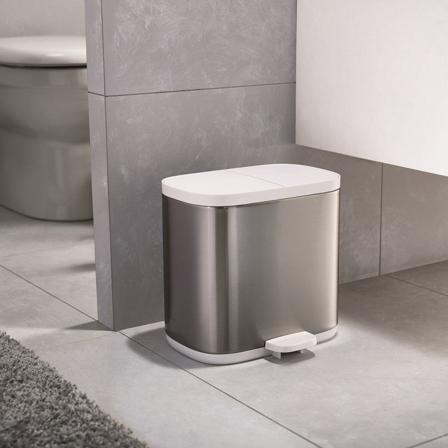 Стильный аксессуар для ванной, который поможет сортировать мусор и понравится всем, кто заботится об окружающей среде. Съёмный контейнер сделан из эргономичного материала, который удобно протирать и мыть. В нем предусмотрено 2 отсека разных размеров – для бутылочек и более мелкого мусора.