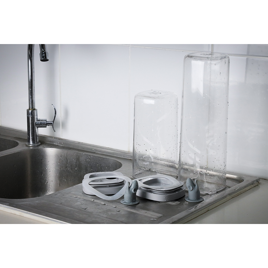 Герметичная крышка оснащена отверстием для удобного насыпания, которое плотно закрывается фигуркой мышонка. Материал не содержит бисфенол-А. Крышка легко разбирается для мытья.