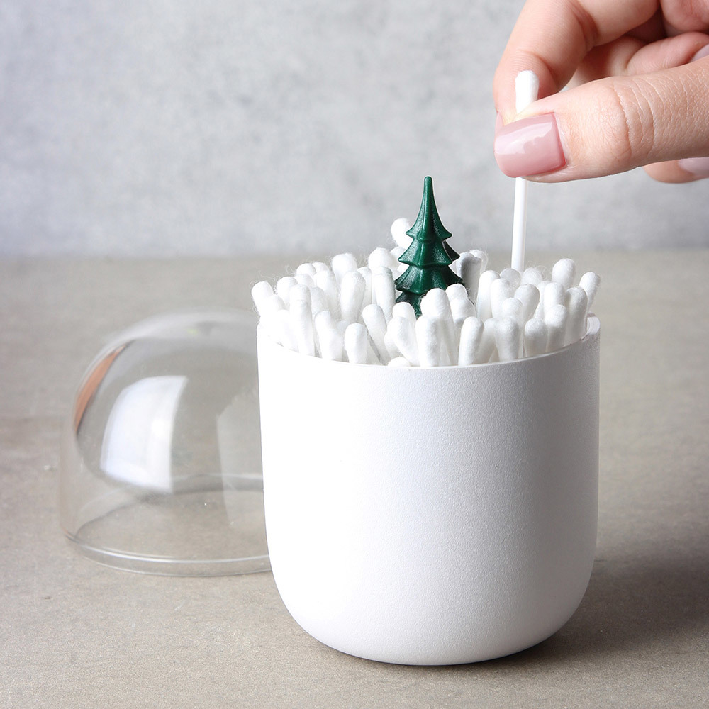 Контейнер для ватных палочек закрывается плотной крышкой, поэтому содержимое не высыпается. Модель можно хранить в ванной на полочке или туалетном столике. При необходимости контейнер легко заполняется, палочки хранятся в таком положении, чтобы их было удобно брать. Корпус подставки герметичен и устойчив.