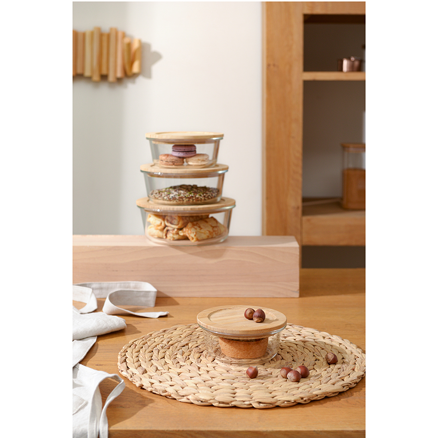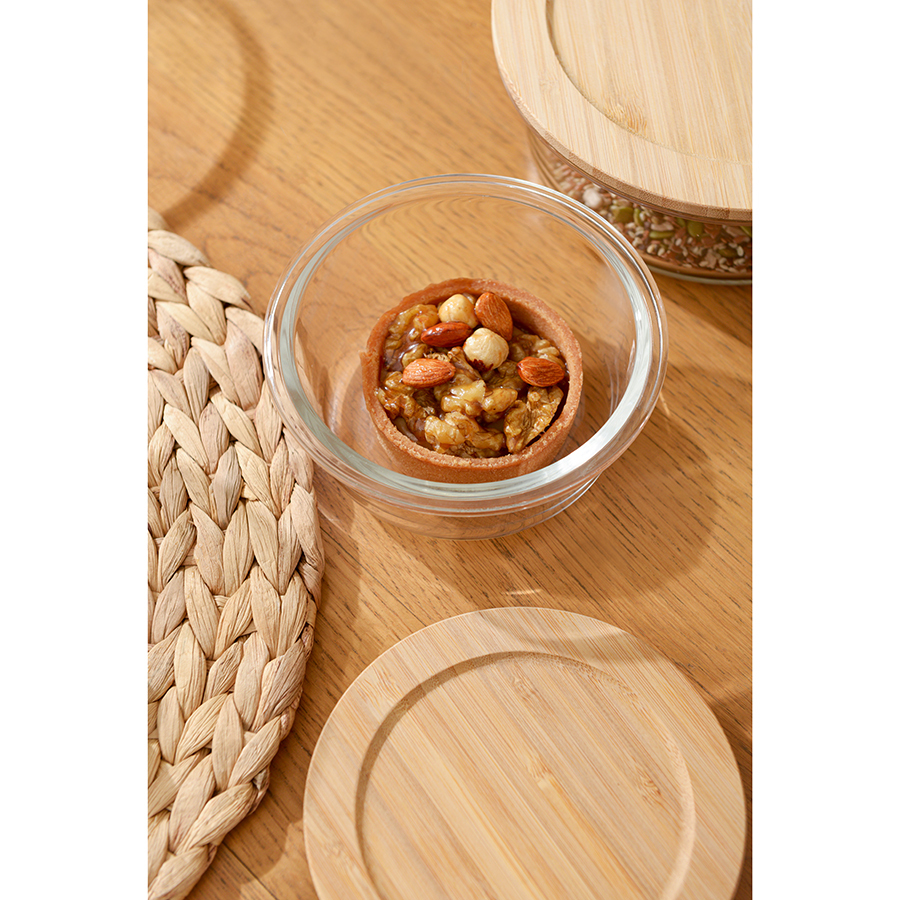 Контейнер с бамбуковой крышкой отлично подойдет для хранения и запекания продуктов, в том числе готовых блюд.