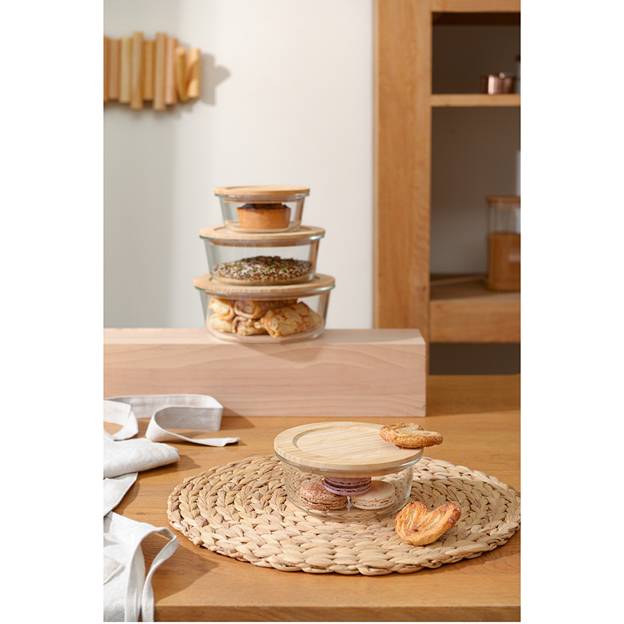 Контейнер с бамбуковой крышкой отлично подойдет для хранения и запекания продуктов, в том числе готовых блюд.