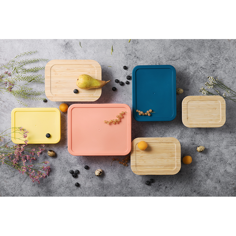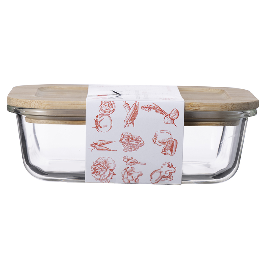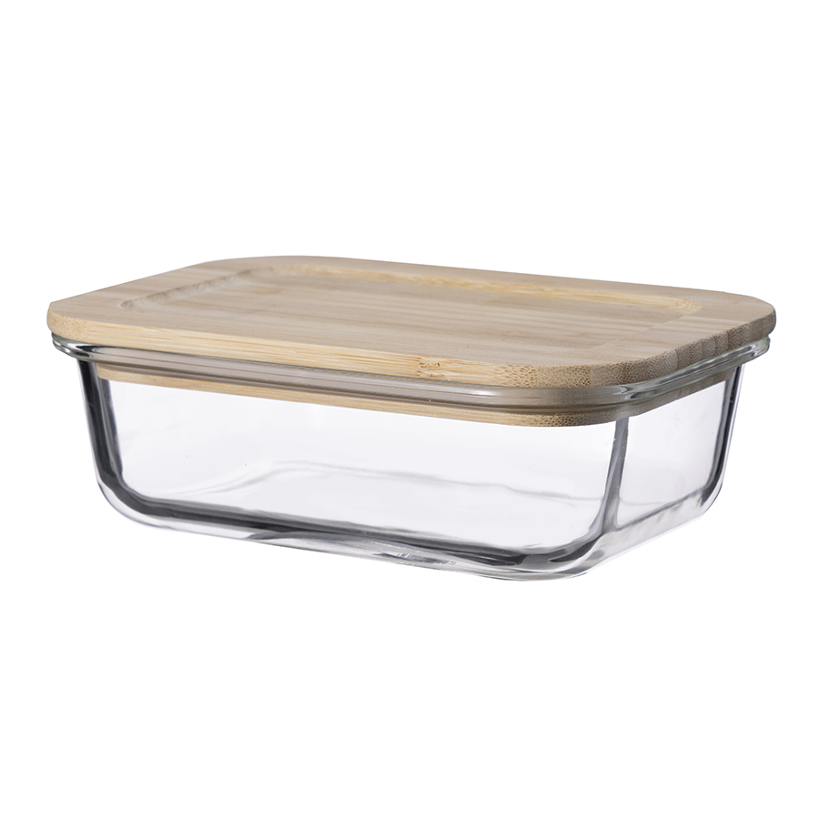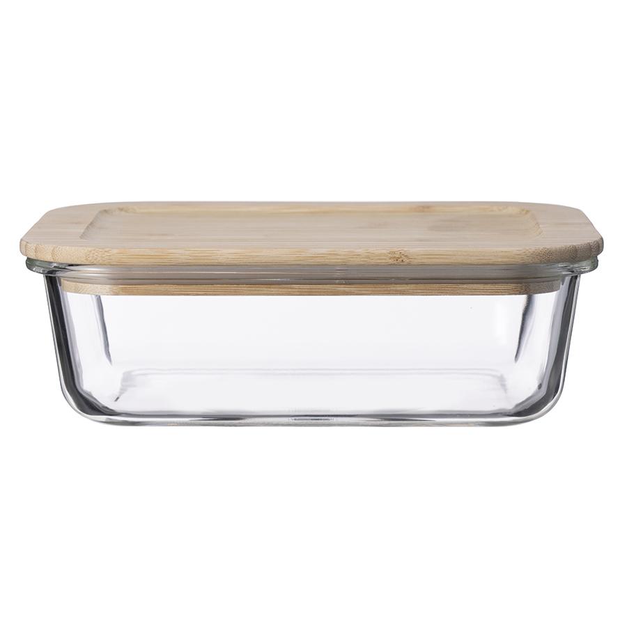 Контейнер выполнен из прочного боросиликатного стекла, крышка - из бамбука. Материалы не содержат токсинов и бисфенола-А.