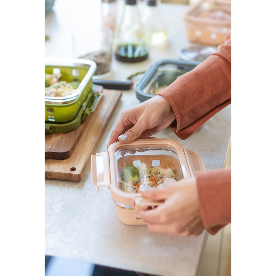 Контейнер закрывается крышкой с надежными замками на каждой стороне. Материал не содержит Бисфенола-А и является абсолютно безопасным для здоровья.