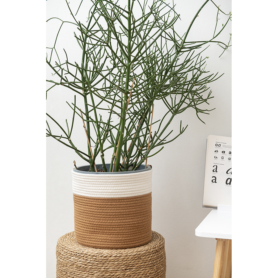 Корзина Ciary прекрасно дополнит интерьер гостиной, спальни или прихожей, оформленных в стиле прованс, эклектика, фьюжн, сканди, эко и др. Этот оригинальный аксессуар идеально подойдет для хранения белья и различных бытовых предметов. Его можно разместить у дивана, кровати, журнального столика или под окном. Изделие выполнено из хлопка с добавлением полиэстера, благодаря чему отличается экологичностью, высокой устойчивостью к износу, легко очищается от загрязнений.