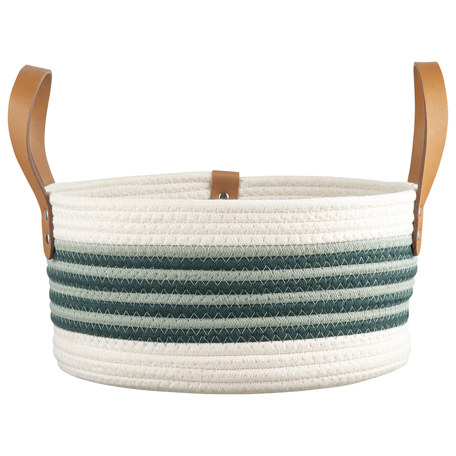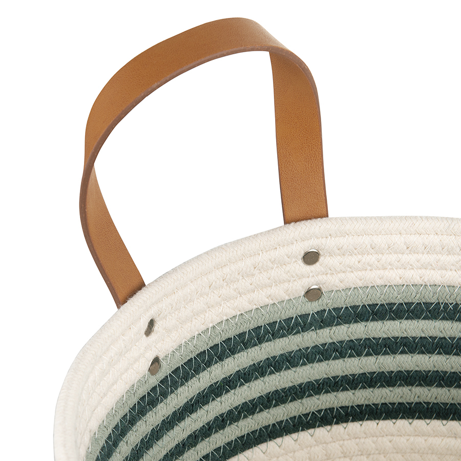Корзина Helly – прекрасный вариант для хранения различных предметов. Благодаря стильному дизайну такой контейнер отлично вписывается в современный интерьер гостиной, спальни или прихожей. Изделие выполнено из хлопковой нити с добавлением полиэстера, что гарантирует ему прочность, устойчивость к истиранию и привлекательный вид на протяжении всего срока службы. Изюминку корзине придают плетеный корпус и ручки из полиуретана, которые также обеспечивают удобную переноску.