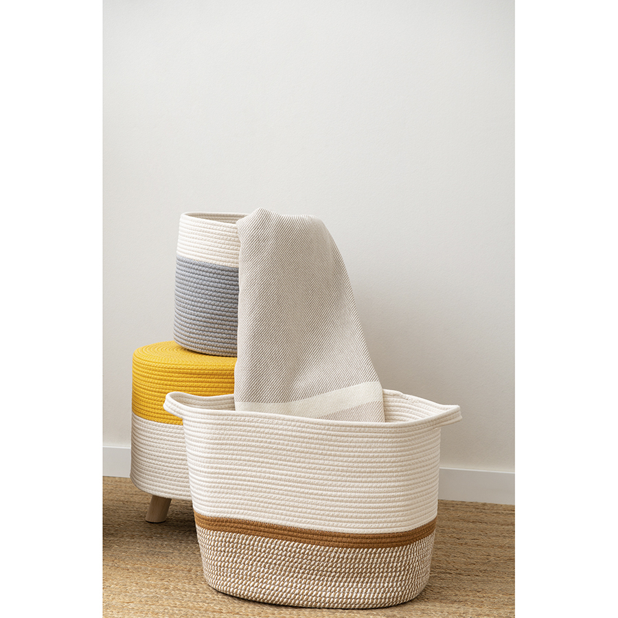 Корзина Kerit – прекрасный вариант для хранения белья и небольших предметов. Благодаря простому, лаконичному дизайну такой контейнер отлично вписывается в современный интерьер гостиной, спальни или прихожей. Сочетание хлопковой нити и полиэстера гарантирует изделию прочность и устойчивость к истиранию. Наличие ручек обеспечивает интересный вид и комфортную переноску.