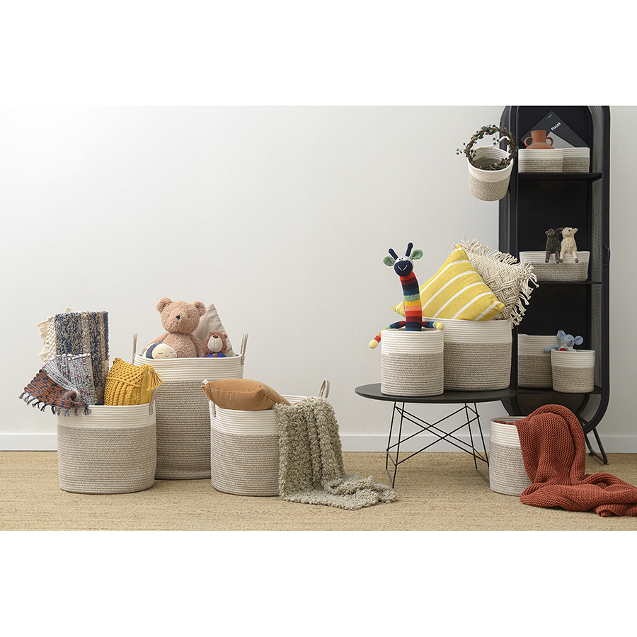 Корзина из хлопкового шпагата Ulrik – прекрасный вариант для поклонников эко-стиля. Емкость идеально подходит для хранения белья, игрушек и различных аксессуаров в любой комнате. За счет компактных размеров изделие не занимает много места в помещении. Плетеный дизайн сочетается с большинством интерьерных стилей: кантри, прованс, эклектика, фьюжн и др. Материал изготовления является экологичным, отличается прочностью и устойчивостью к износу. Наличие ручек обеспечивает удобную переноску.