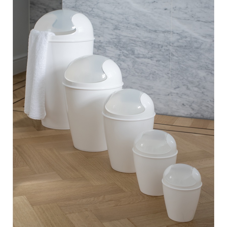 Корзина для мусора с крышкой DEL – вместительная емкость для отходов, которая станет незаменимой в каждой ванной или туалетной комнате. За счет поворотной крышки бак легко использовать, практически не касаясь поверхности. Простой, но стильный дизайн органично вписывается в любой современный интерьер.