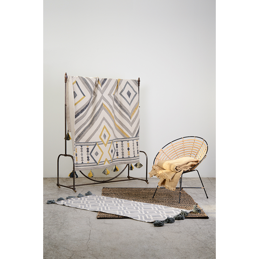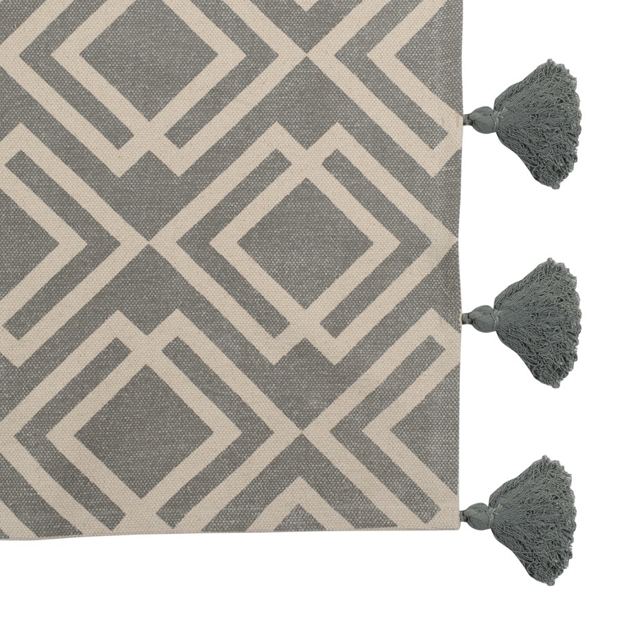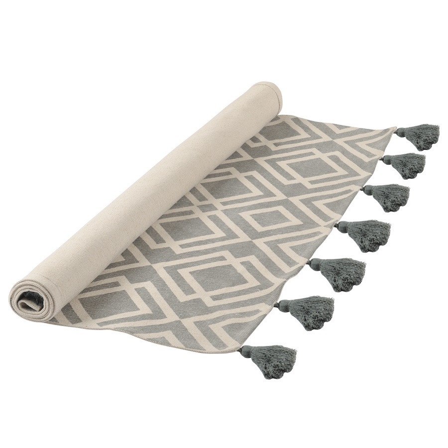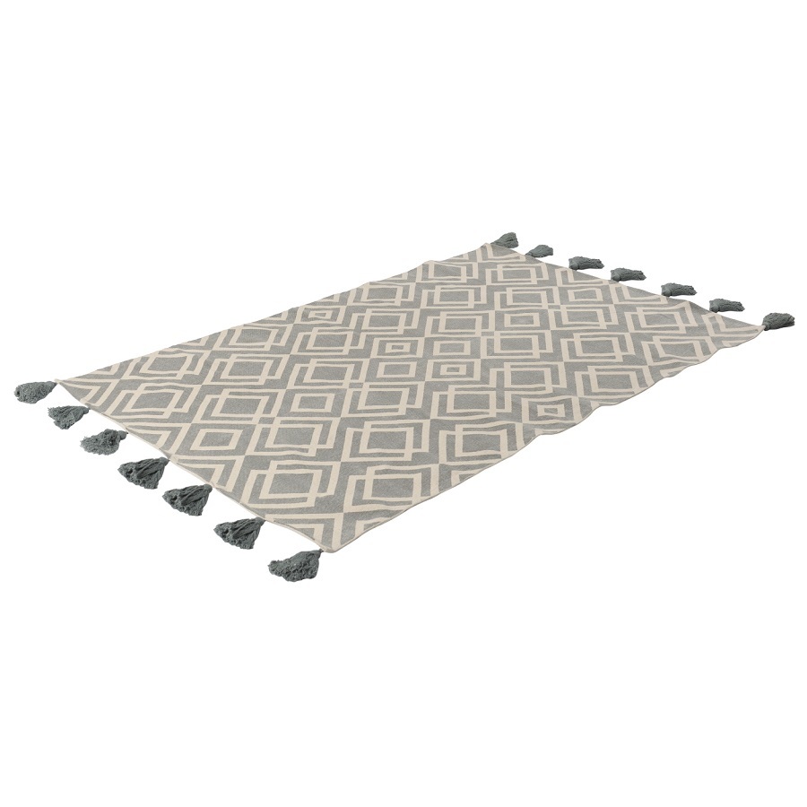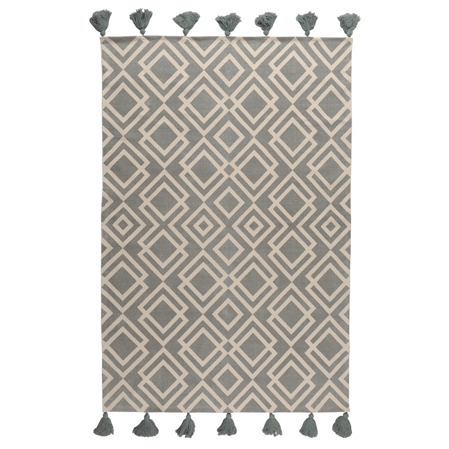 Ковер из хлопка с этническим узором Ромбы и кисточками из коллекции Ethnic универсальной расцветки впишется практически в любой интерьер и станет необычным акцентом. Оригинальное изделие, выполненное из натуральных материалов, будет уместно в гостиной или в спальне.