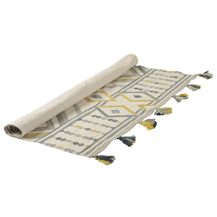 Ковер из хлопка с контрастным узором и кисточками из коллекции Ethnic органично впишется в любой интерьер: от минимализма и фьюжн, до скандинавского и бохо. Изделие с этническими мотивами выполнено из высококачественного и прочного хлопка. Станет ярким акцентом в детской и любой другой комнате. Ковер с объемными кисточками представлен в нескольких размерах.