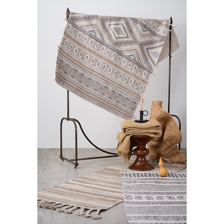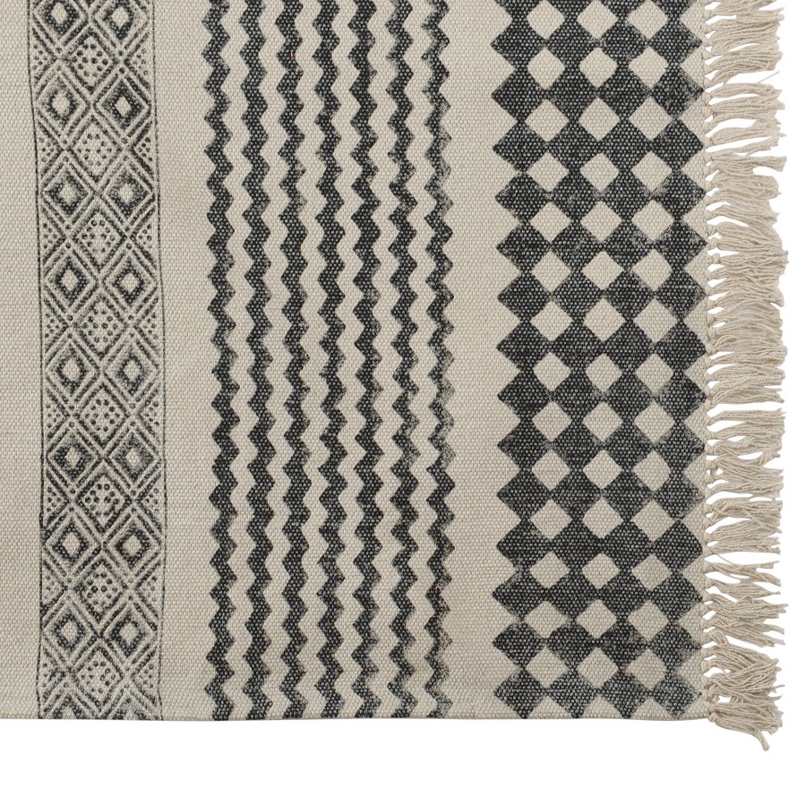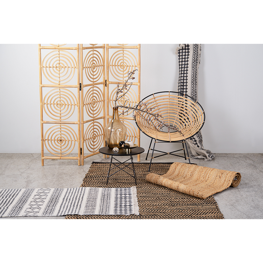 Ковер из хлопка с контрастным орнаментом и бахромой из коллекции Ethnic нейтрального цвета дополнит любой современный интерьер. Он добавит уюта и станет акцентом в комнате. Оригинальное и практичное изделие из хлопка будет особенно уместно на полу в гостиной или в спальне. Ковер представлен в нескольких размерах.