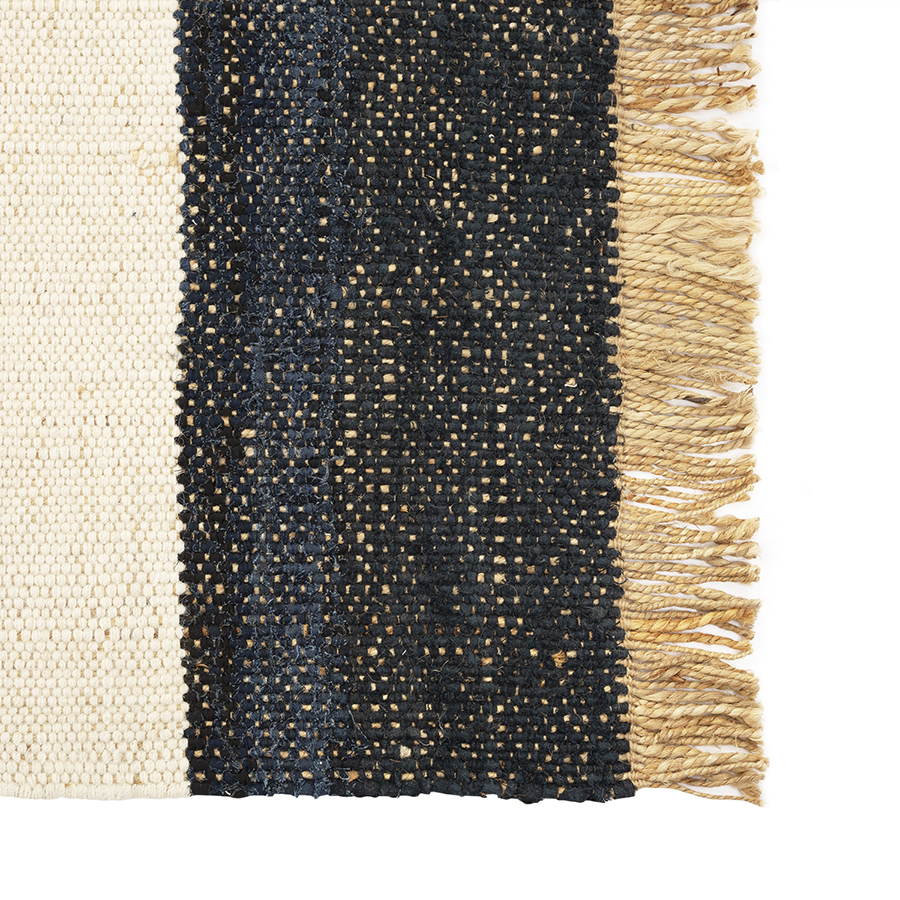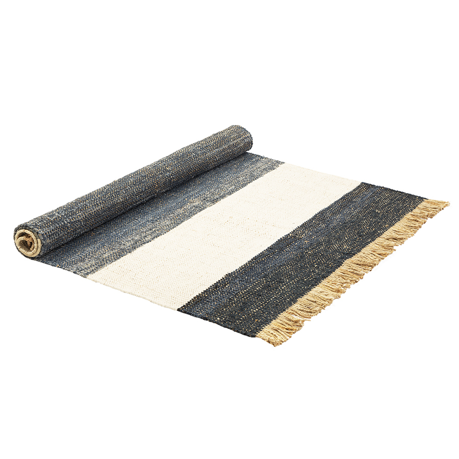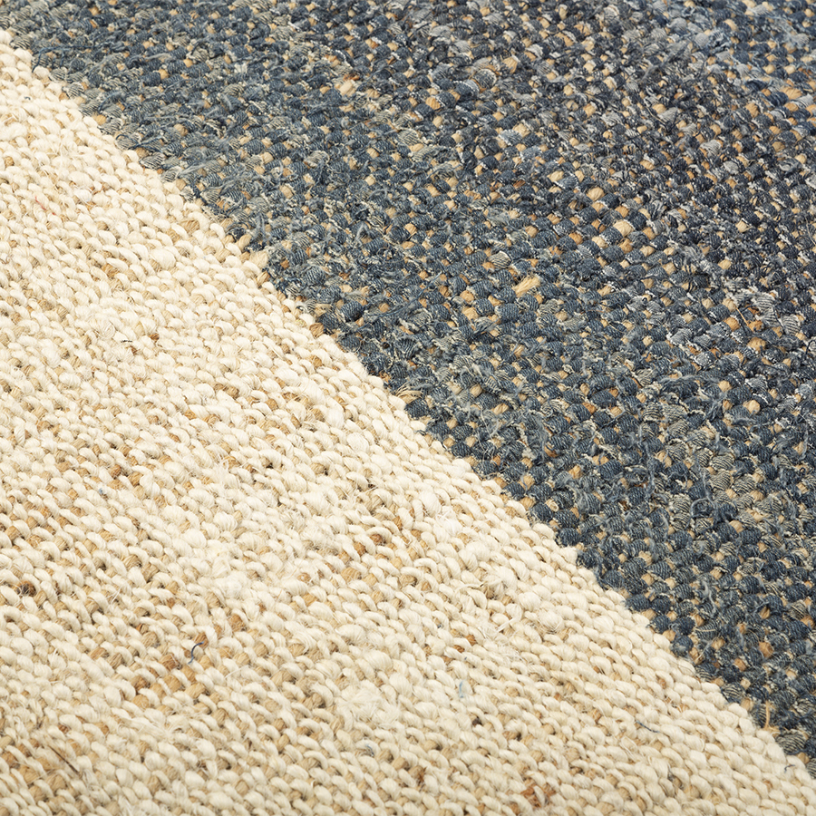 Ковер Hyderabad из коллекции Ethnic отлично смотрится в современных интерьерах и эклектичных пространствах. Одним из главных достоинств дизайна является сочетание трех уникальных материалов. Джут делает это напольное покрытие практичным и долговечным, обеспечивая стойкость к износу и сохраняя его первоначальную форму на протяжении долгого времени. Деним добавляет в оформление модный акцент. Шерсть придает изделию мягкость, создавая приятное ощущение под ногами. Благодаря натуральной цветовой палитре ковер прекрасно гармонирует с мебелью и предметами интерьера любых оттенков.
