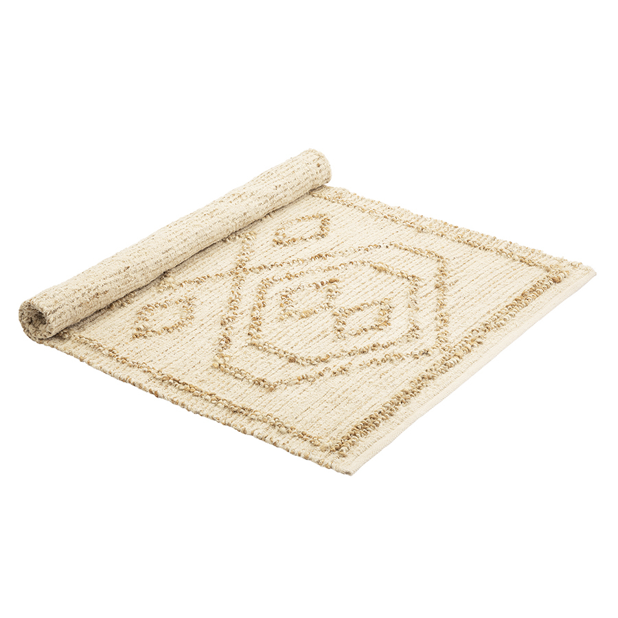Небольшая разница в цвете и фактуре джута и переработанного текстиля в разных частях ковра делает каждое изделие уникальным. У новых напольных покрытий может присутствовать естественный запах, он абсолютно безопасен и при частом проветривании быстро исчезает. После вскрытия упаковки ковер в течение некоторого времени может сохранять элементы деформации вследствие долгого нахождения в скрученном виде, но уже через 1-2 недели он полностью выпрямится. Ковер может выцветать под воздействием прямых солнечных лучей. Рекомендуем периодически менять расположение изделия, чтобы цвет менялся равномерно.