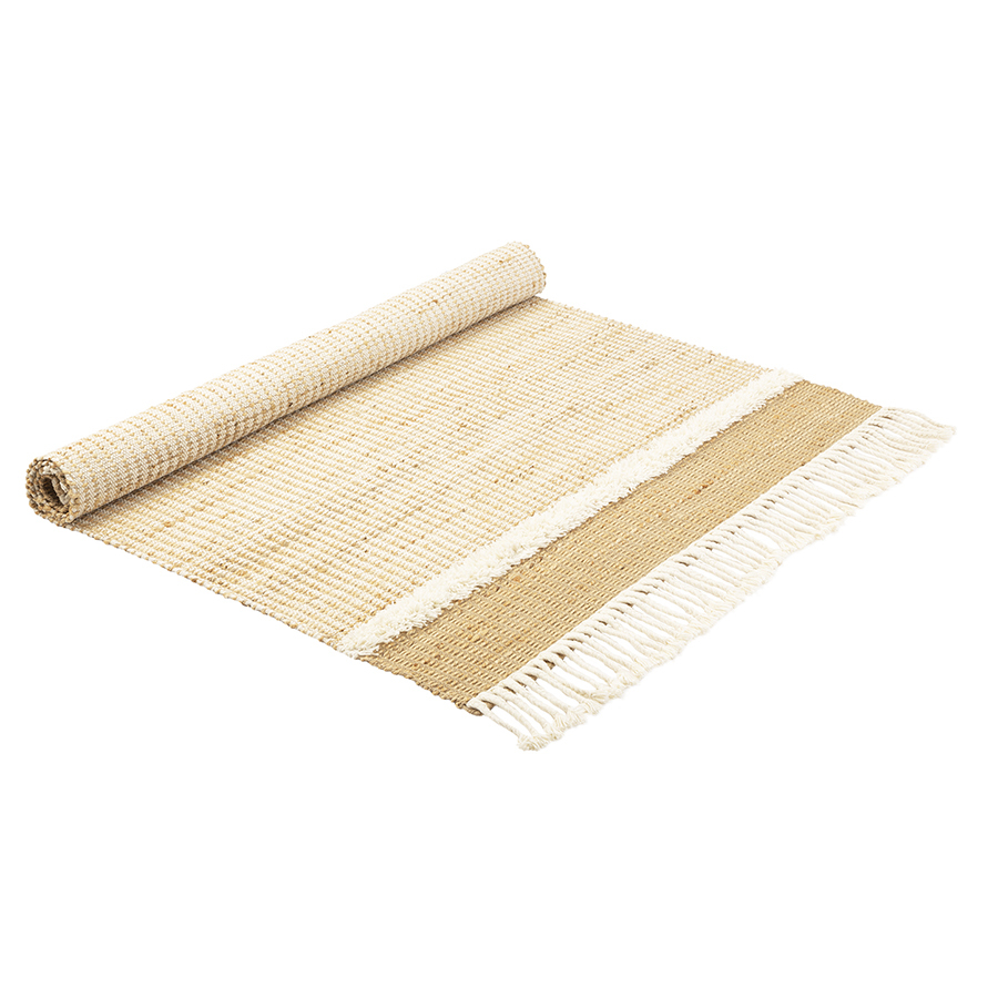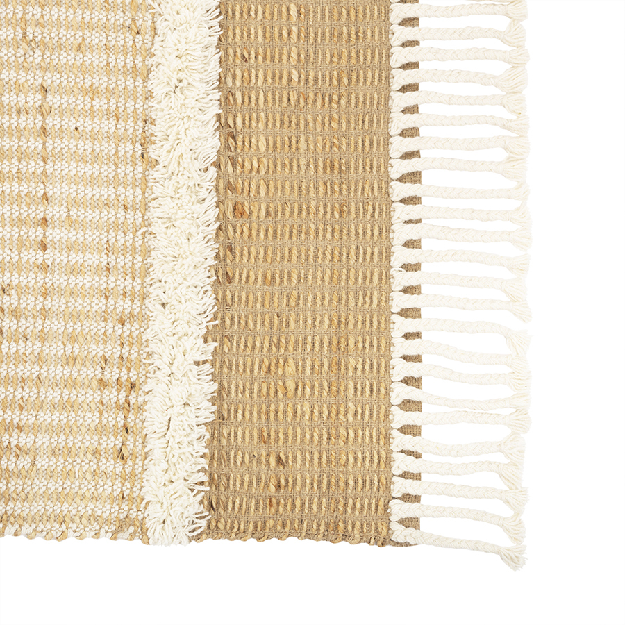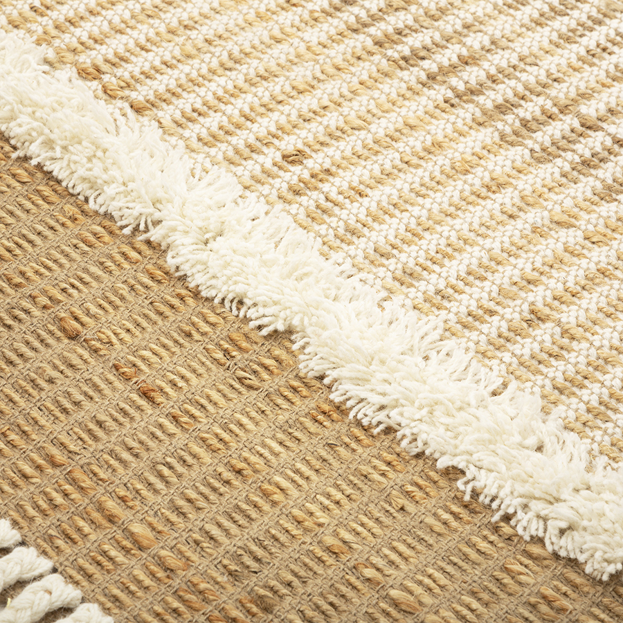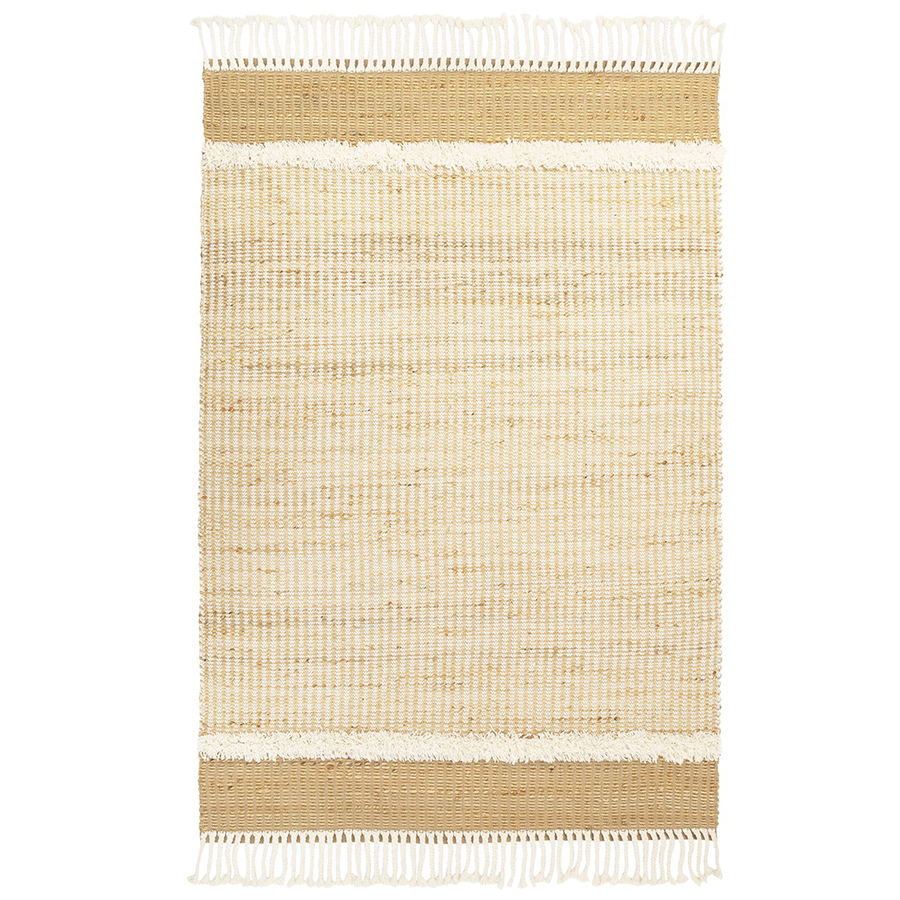Ковер Mumbai из коллекции Ethnic поможет в создании стильного и уютного пространства с теплой домашней атмосферой. Сочетание джута и шерсти обеспечивает изделию отличные эксплуатационные характеристики. Джут известен своей прочностью и долговечностью. Шерсть обладает хорошими звукоизоляционными свойствами, что позволяет снизить уровень шума в помещении. Натуральные материалы гарантируют безопасное использование, простой уход, не вызывают аллергию. Узоры на ковре красиво сменяют друг друга, захватывая воображение и создавая ощущение движения и ритма. Декор в виде бахромы придает дизайну особый шарм.