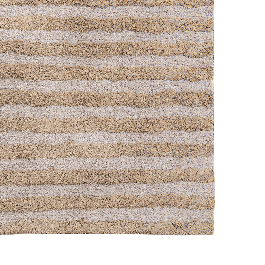 Ковер ворсовый из хлопка с рисунком Tulip garden бежевого цвета из коллекции Terra сделает интерьер гостиной, спальни, прихожей или рабочего кабинета более уютным и оригинальным. Благодаря тафтинговой технологии производства покрытие отличается высокими показателями износостойкости и красивым рельефным узором. В основе принта – ровные линии полей тюльпанов в Голландии, видимые с высоты птичьего полета. Ворс из 100% хлопка дарит приятные тактильные ощущения для босых ног. Натуральный материал и природная цветовая палитра – идеальное решение для тех, кто с теплом и трепетом относится к своему жилому пространству.