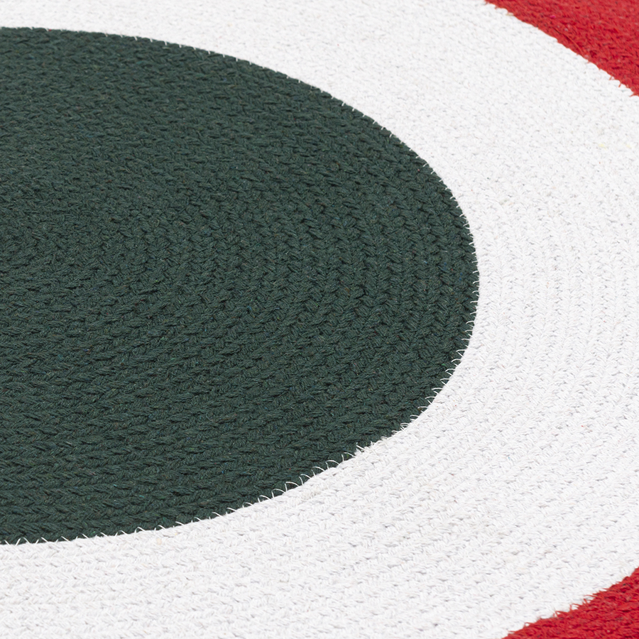 Ковер из хлопка Target темно-зеленого цвета из коллекции Ethnic прекрасно подойдет для создания в помещении уютной атмосферы. Изделие округлой формы привнесет в оформление комнаты ощущение гармонии и легкости. Контрастный узор позволит сделать акцент на ярких элементах интерьера. Изделие из натурального материала отличается экологичностью, высокой прочностью, устойчивостью к износу, не вызывает аллергию.