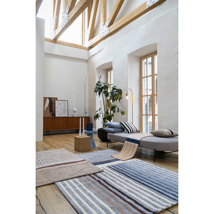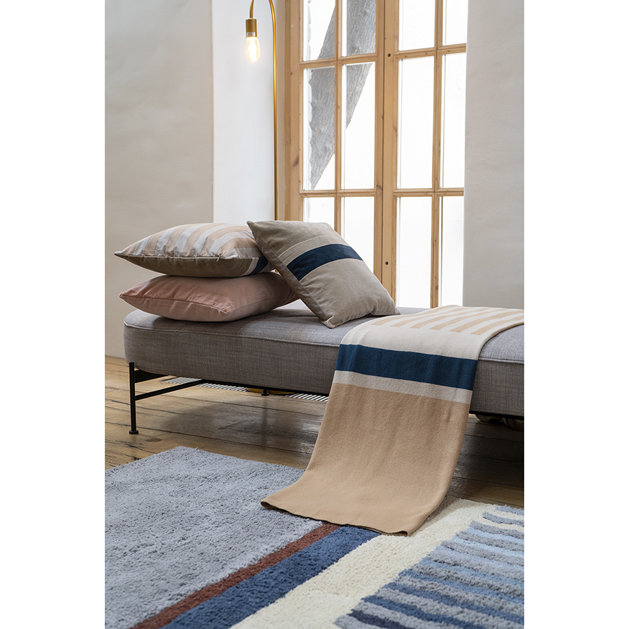 Чтобы придать интерьеру завершенный вид, к ковру рекомендуется добавить декоративные подушки и текстиль из одноименной коллекции.