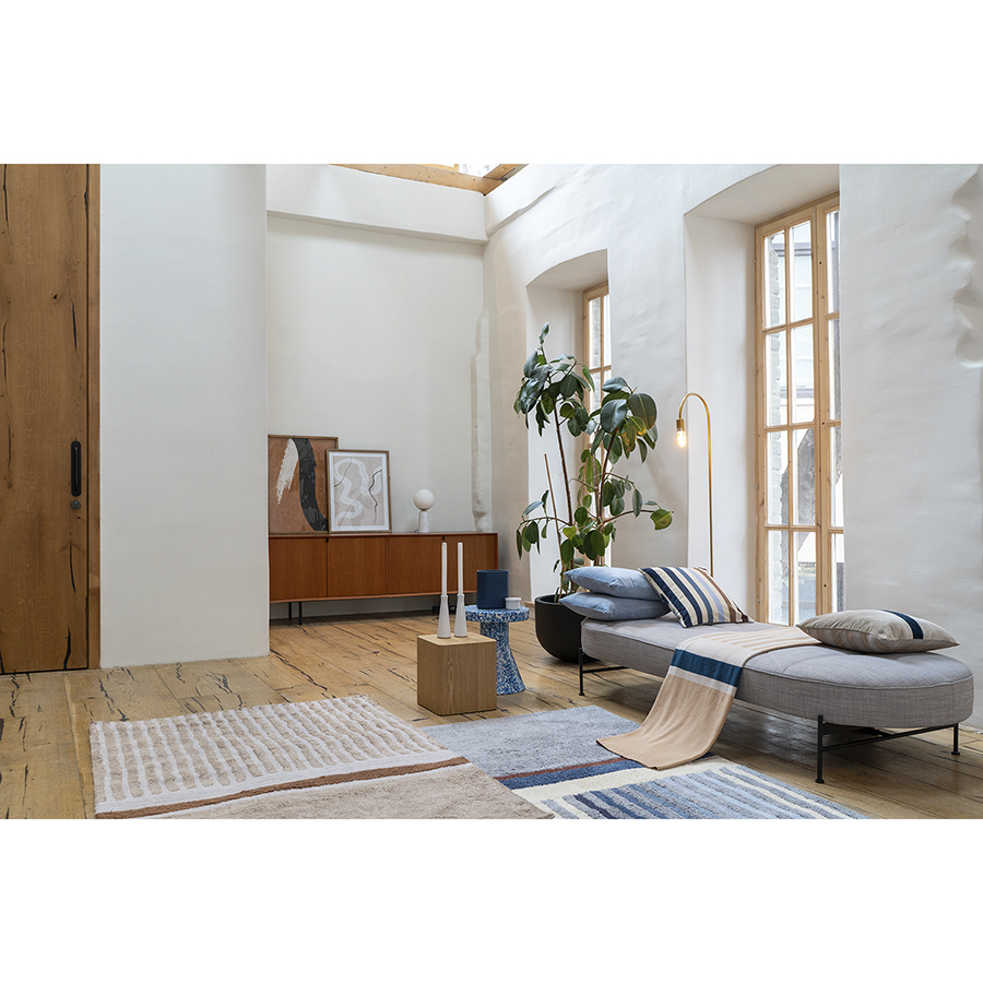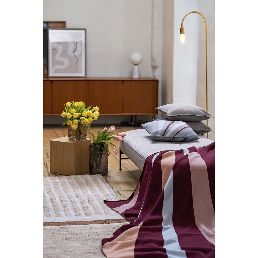 Чтобы придать интерьеру завершенный вид, к ковру рекомендуется добавить декоративные подушки и текстиль из одноименной коллекции.