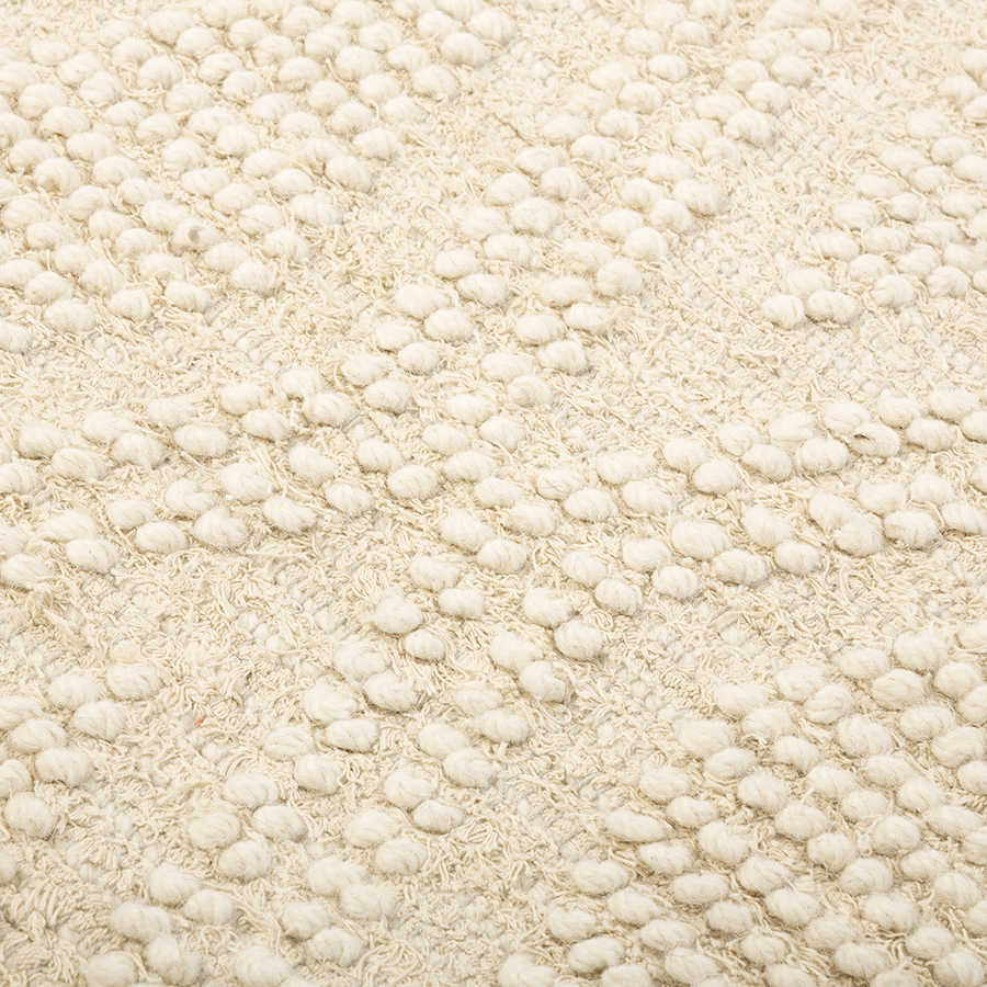 Ковер Shillong из коллекции Ethnic – настоящая находка для ценителей экологичных материалов и простых, лаконичных интерьеров. Благодаря нейтральной цветовой гамме в бежевых тонах и ненавязчивому геометрическому узору это напольное покрытие великолепно вписывается в различные дизайнерские решения и добавляет колоритные нотки этники в любое оформление. Сочетание высококачественной шерсти и износостойкого переработанного хлопка делает ковер прочным, практичным и долговечным. Натуральные материалы обеспечивают безопасное использование, не вызывают аллергических реакций.