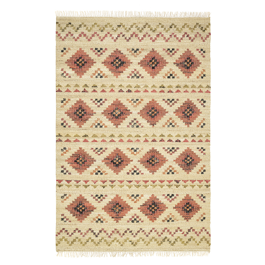 - Ковер с контрастным узором в этническом стиле привлекает внимание и может использоваться в качестве акцентного элемента.