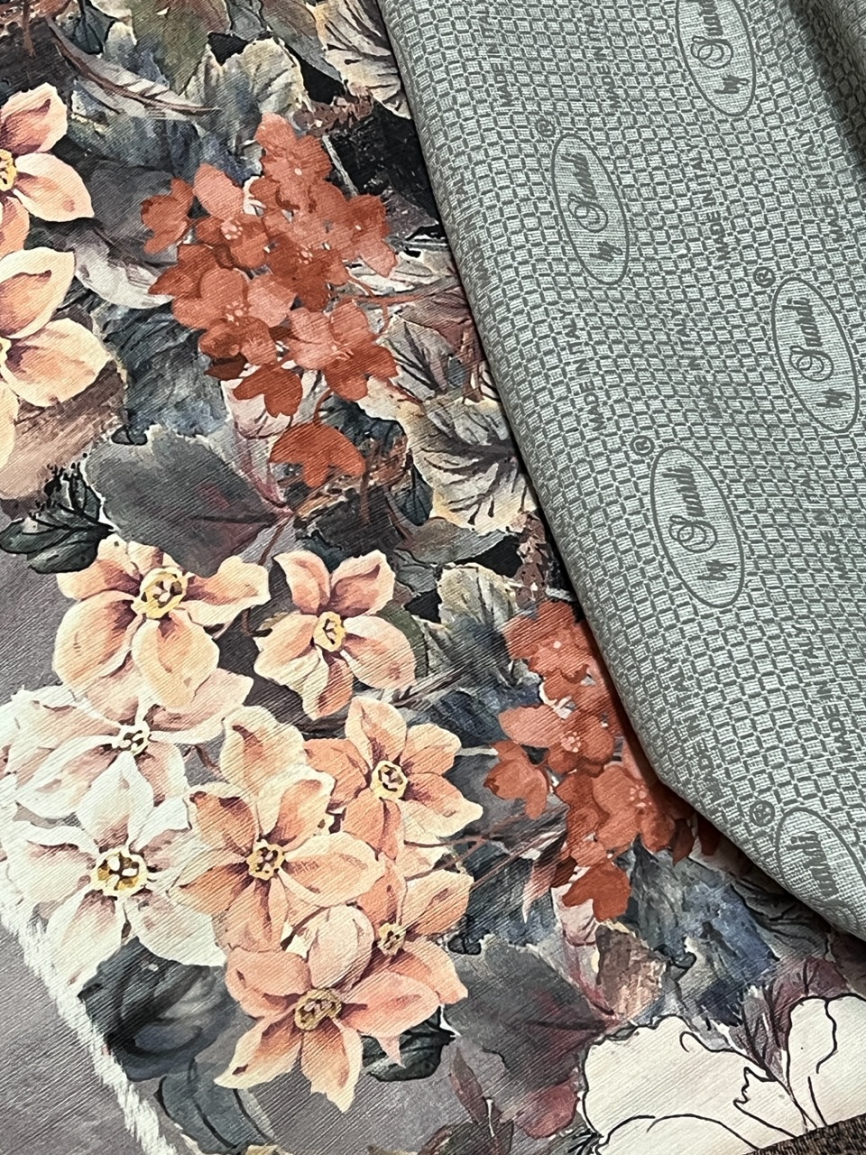 Мягкие оттенки и чернильные края, напоминающие сдержанную элегантность японского искусства, с нежными розовыми и кремовыми оттенками, напоминающими лепестки цветущей вишни. Состав: 70 % полиэстер, 25 % хлопок, 5 % другие волокна