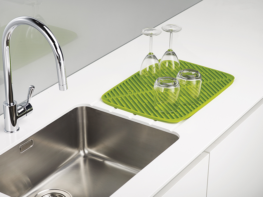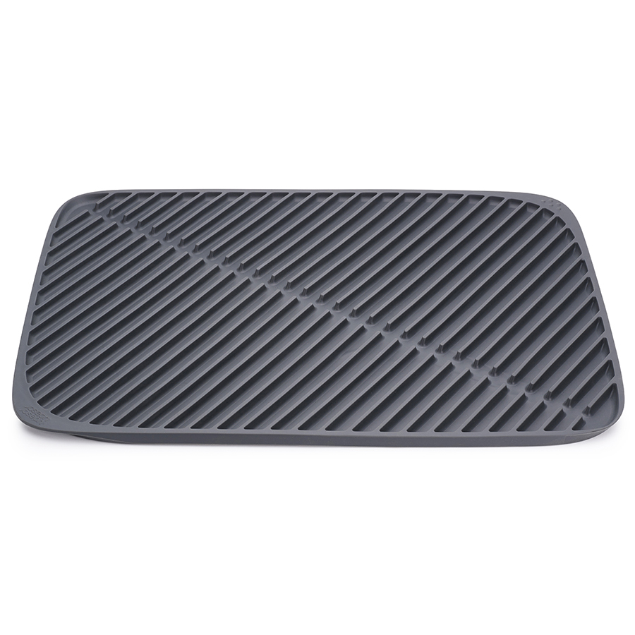 Увеличенная версия популярного коврика с мягкой прорезиненной поверхностью для просушивания самых разных предметов. Удобен в качестве дополнительной сушилки при большом объеме посуды. Благодаря резиновым ребрам вода, не застревая под чашками и стаканами, стекает прямо в центральный желоб. Чтобы аккуратно слить воду, достаточно просто приподнять уголки по обеим сторонам коврика и наклонить его в раковину. Мягкая резиновая поверхность бережно защищает хрупкую посуду от повреждений.