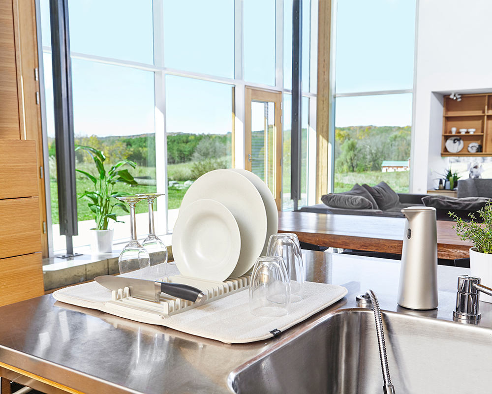 Функциональный предмет 2-в-1, в котором объединены коврик и подставка для сушки посуды. Коврик удобен для сушки чашек, стаканов и глубоких мисок, а подставка — для тарелок и блюдец. Легко разбирается для удобной чистки. Для хранения компактно складывается и закрепляется с помощью эластичных завязок.