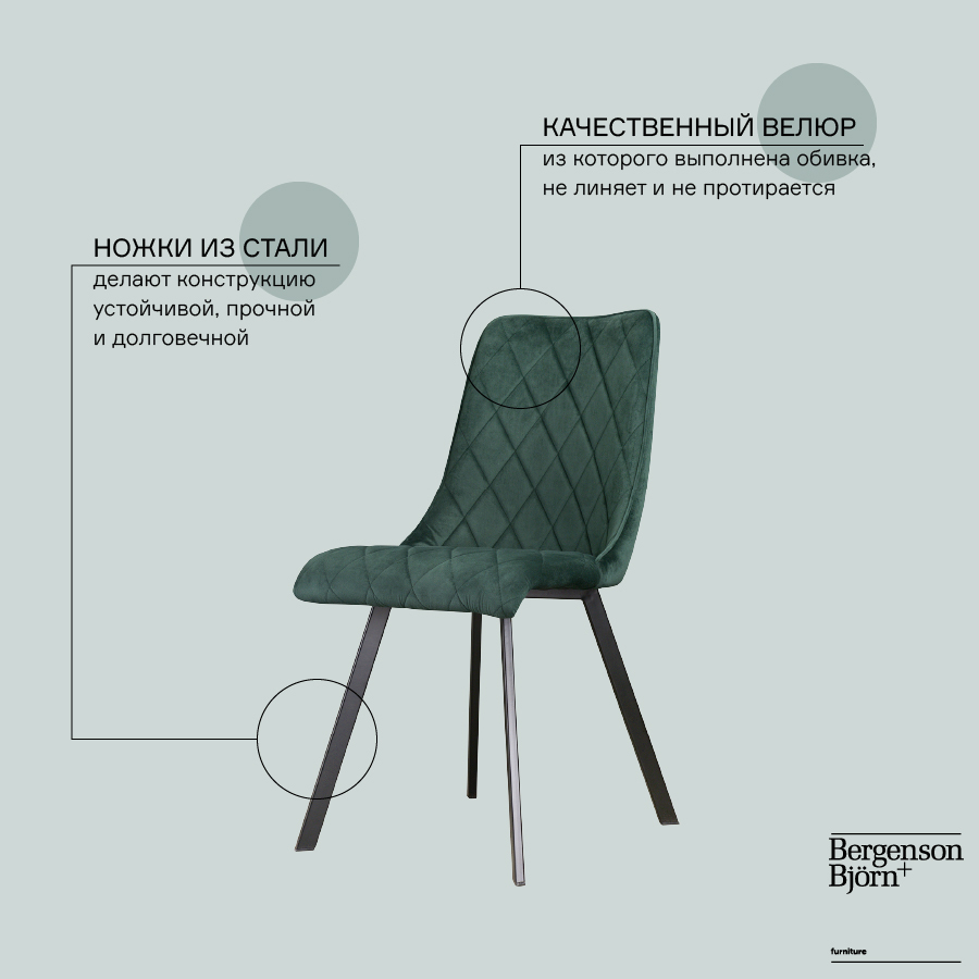 Стул Sophie – стильная, удобная и практичная мебель, которая будет уместна в любом современном интерьере. За счет минималистичного дизайна и спокойной цветовой гаммы модель отлично сочетается с различными вариантами оформления помещения. Обивка из велюра с бархатистой фактурой смотрится презентабельно, делает силуэт более изысканным и утонченным. Стул имеет устойчивые металлические ножки, покрытые износостойкой порошковой краской. Расположенная под углом спинка и мягкое сиденье обеспечивают комфортную посадку.