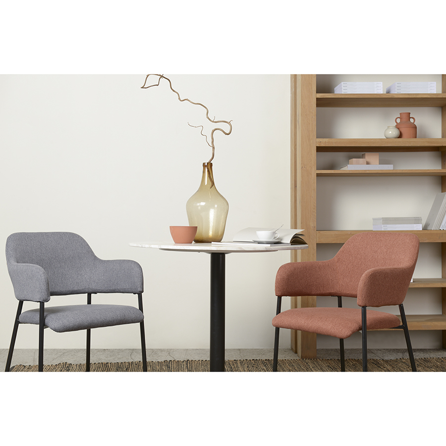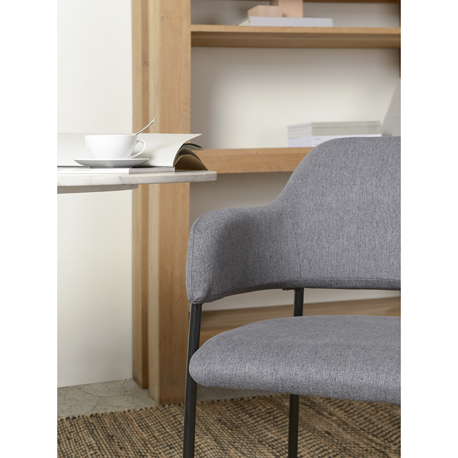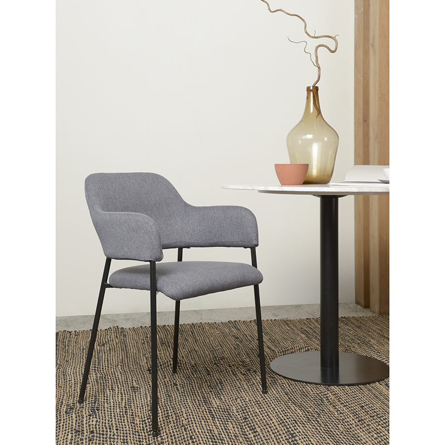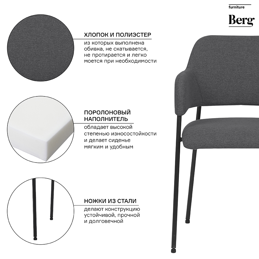 Стильное кресло темно-серого оттенка украсит интерьер столовой, гостиной или спальни.