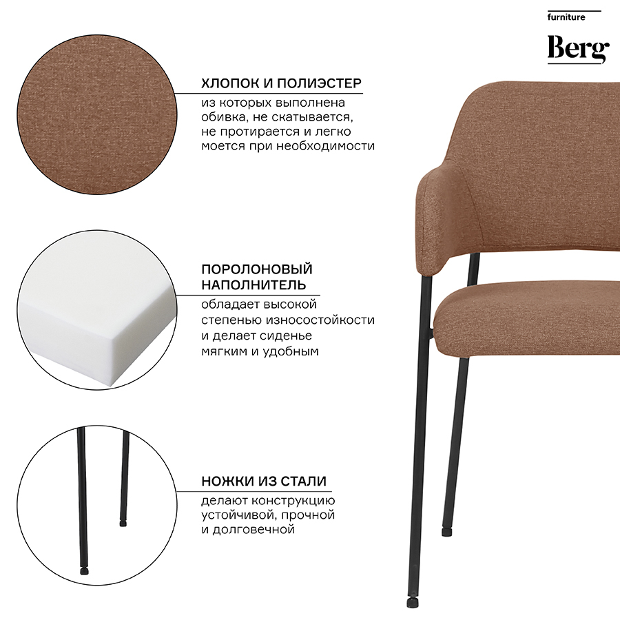 Стильное кресло терракотового оттенка украсит интерьер столовой, гостиной или спальни.