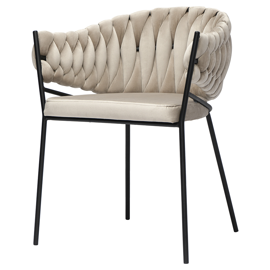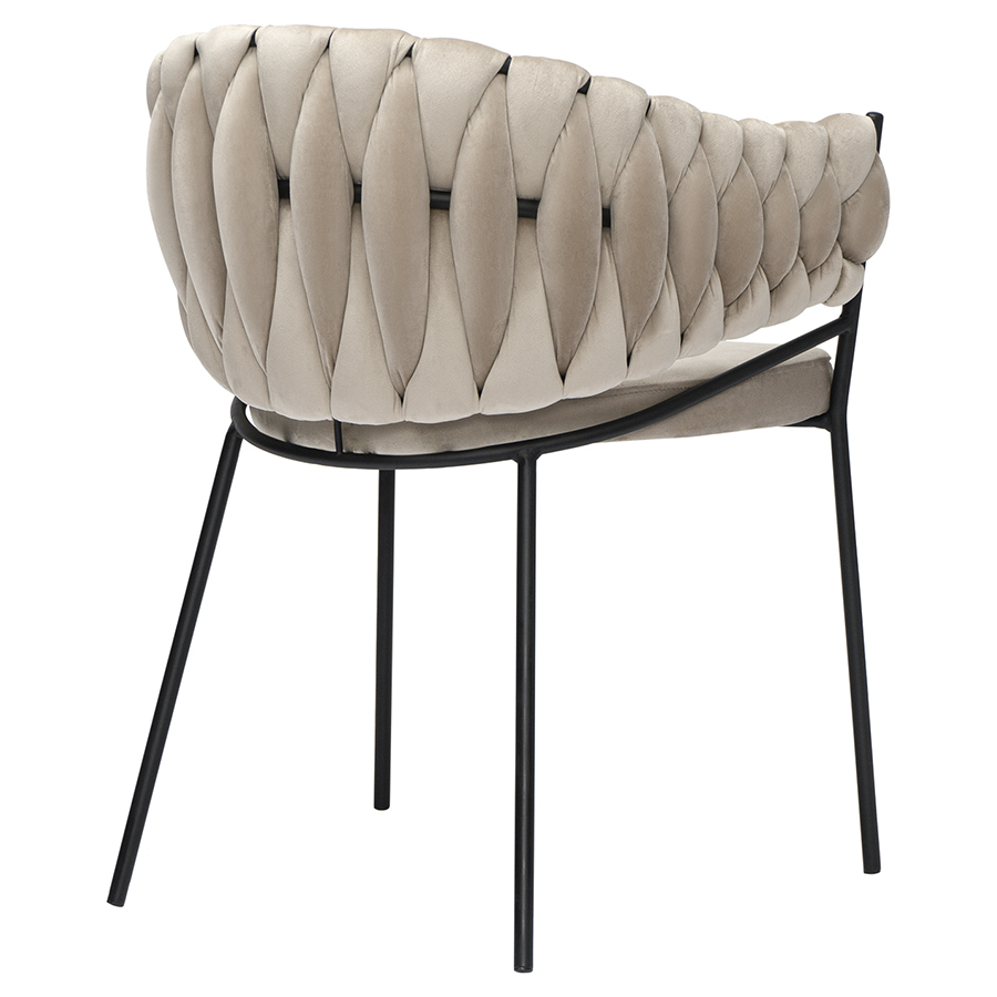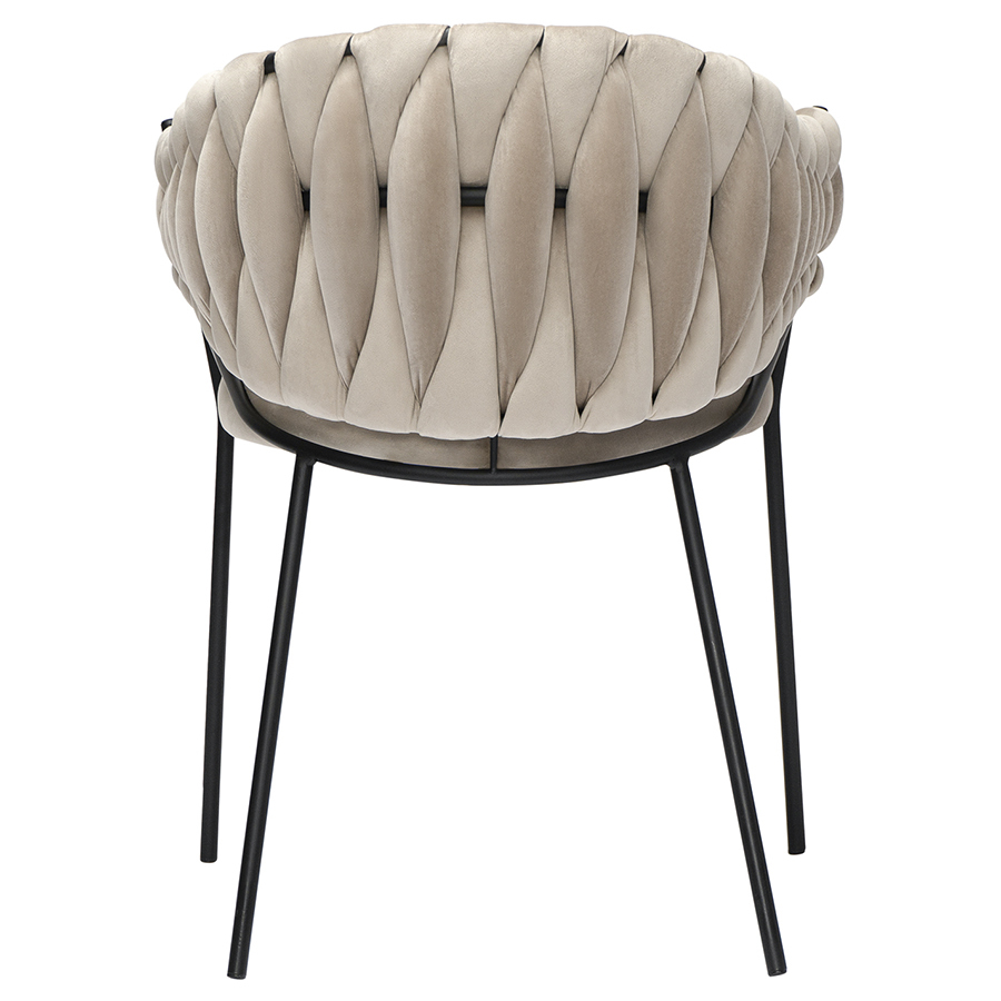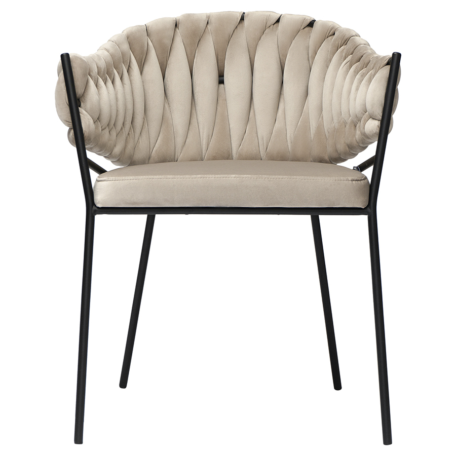 Кресло Lind поможет сделать акцент на стильном дизайне интерьера. Главная особенность модели – оригинальная плетеная спинка. Бархатистый, приятный на ощупь велюр дарит тактильный комфорт и смягчает строгие формы прочного железного каркаса. За счет высоких ножек модель выглядит утонченно, благодаря чему не перегружает пространство. Сиденье с наполнителем из пенополиуретана, глубокая посадка и наличие подлокотников обеспечивают комфорт во время отдыха. Мебель в спокойных тонах станет оптимальным вариантом для спальни, гостиной, кабинета, оформленных в любой цветовой гамме.