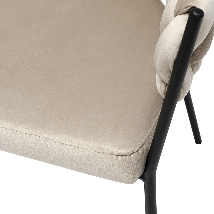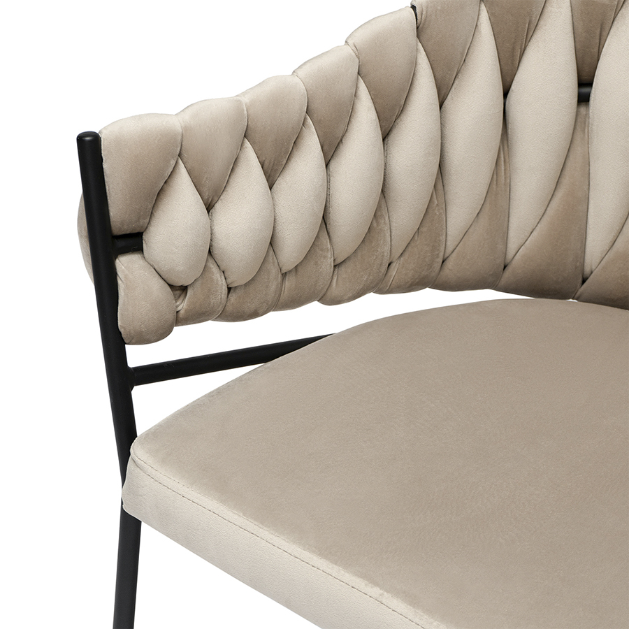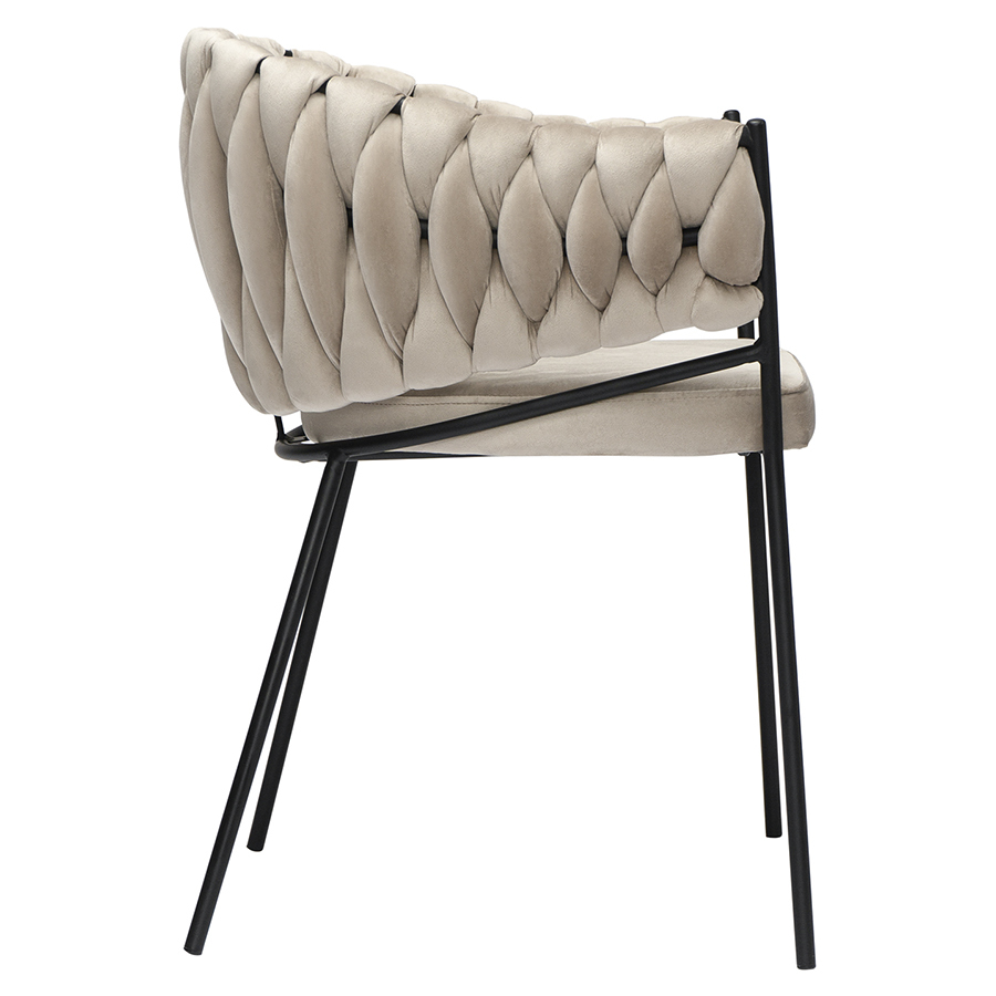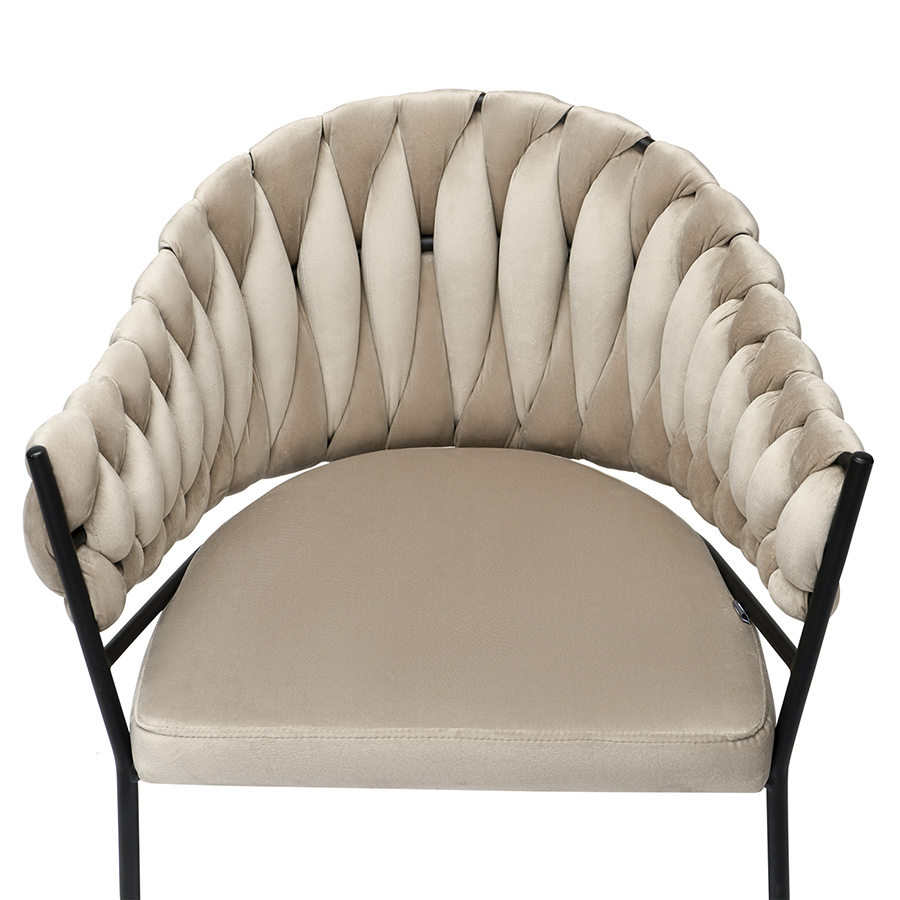 Кресло Lind поможет сделать акцент на стильном дизайне интерьера. Главная особенность модели – оригинальная плетеная спинка. Бархатистый, приятный на ощупь велюр дарит тактильный комфорт и смягчает строгие формы прочного железного каркаса. За счет высоких ножек модель выглядит утонченно, благодаря чему не перегружает пространство. Сиденье с наполнителем из пенополиуретана, глубокая посадка и наличие подлокотников обеспечивают комфорт во время отдыха. Мебель в спокойных тонах станет оптимальным вариантом для спальни, гостиной, кабинета, оформленных в любой цветовой гамме.